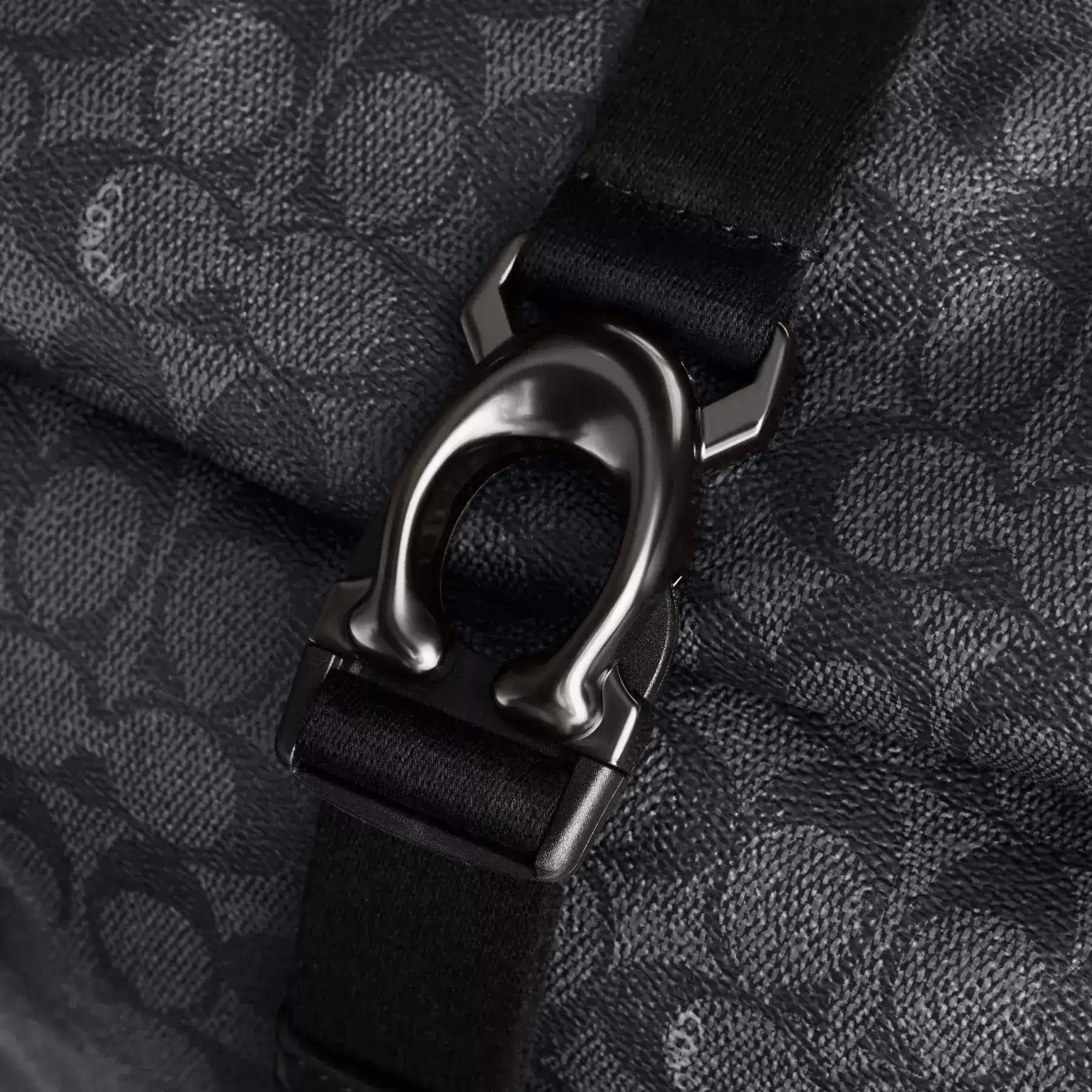 Always on call, our Beck is a sophisticated sporty choice for everyday. Crafted of refined leather and our Signature canvas, this sleek roll top backpack has space for a 16″ laptop, interior multifunction pockets and an outside zip pocket for easy organization. Featuring exterior zipper access to the main compartment, the work-to-weekend style is finished with a lightweight and breathable Signature spacer mesh back, adjustable shoulder straps and a chest strap for comfortable wear. (C and be seen with our sporty Signature speedclip hardware.)
