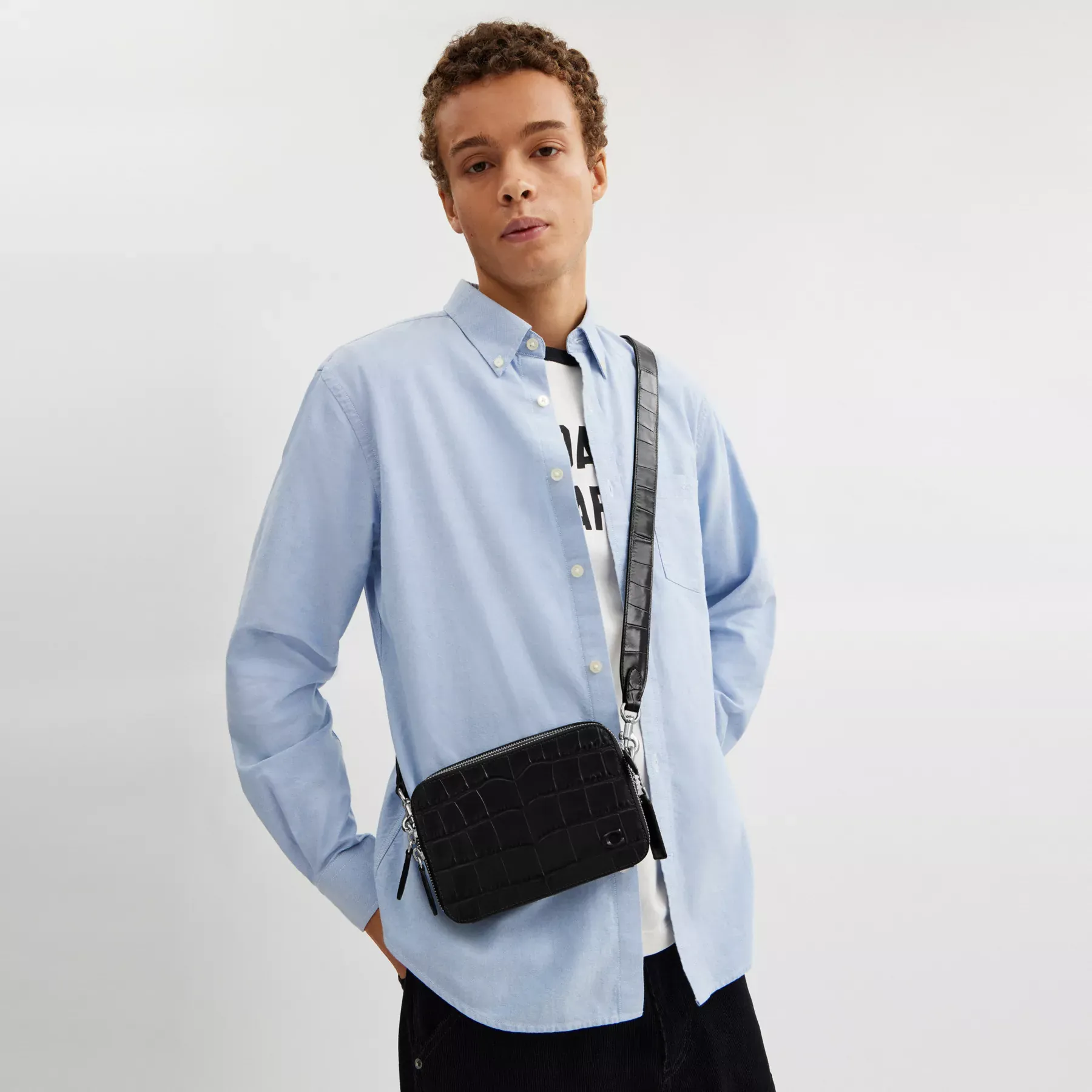 ,For adventures near and far, our Charter is designed to make every journey, commute and errand feel like a first-class experience. Crafted of distinctive crocodile-embossed leather detailed with our tonal Signature hardware, our dual-zipper Crossbody 19 holds everyday essentials with interior card slots, a multifunction pocket and room for a phone, wallet and more.