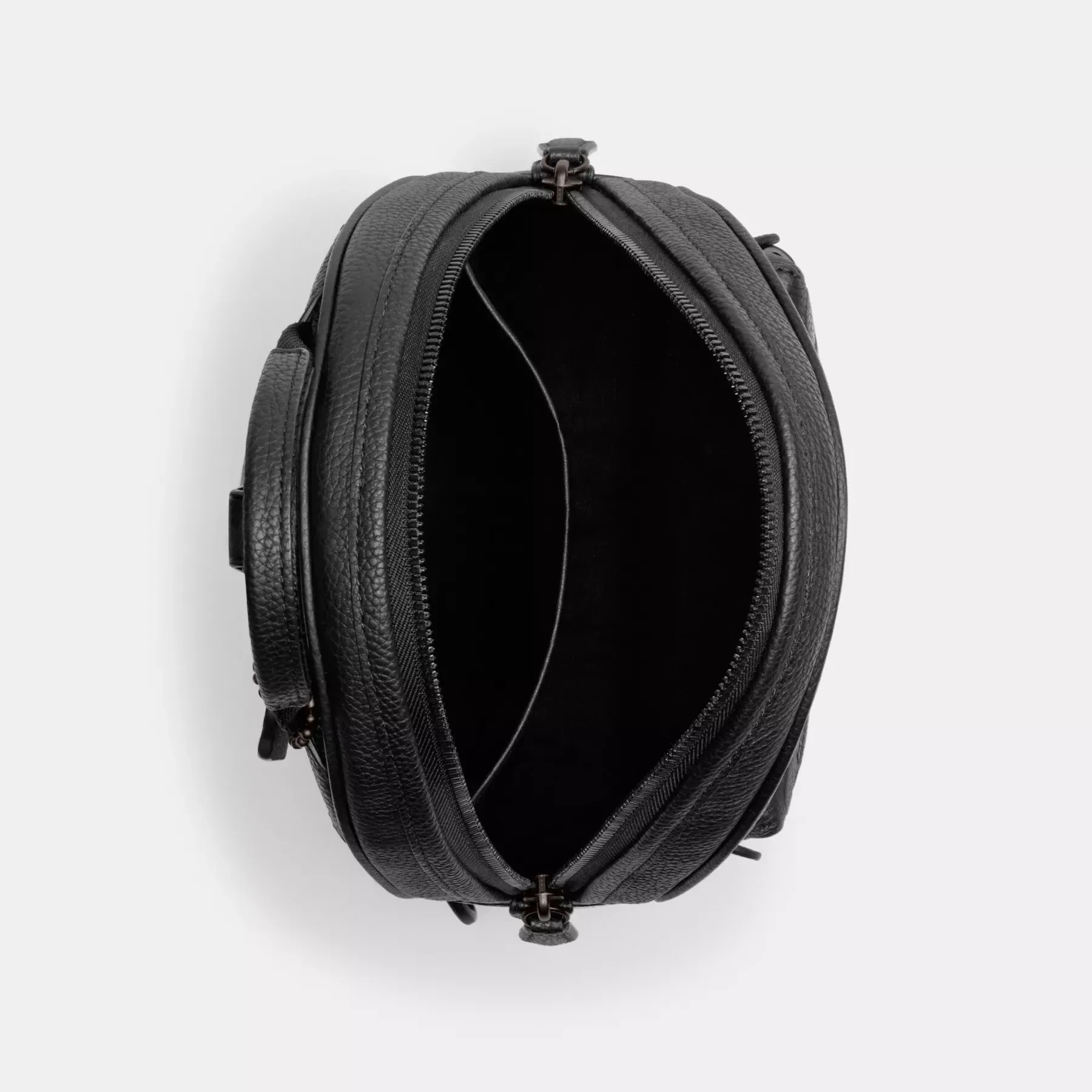 For adventures near and far, our Charter is designed to make every journey, commute and errand feel like a first-class experience. A slender alternative to a backpack, this streamlined Pack is a sporty hands-free design with room for the largest size phone or iPad, pockets inside and out for easy organization and lightweight spacer mesh backing. Crafted of our Signature soft polished pebble leather finished with durable matte tonal PVD coated hardware, clip it left side or right side to wear slung on the shoulder or crossbody.
