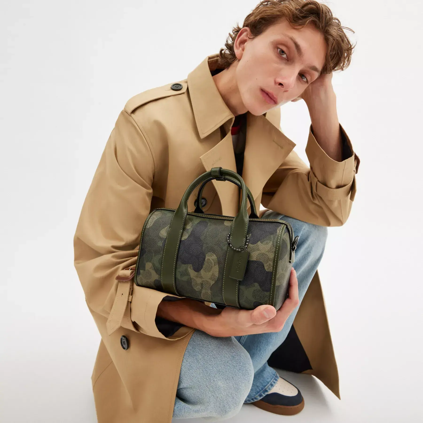 ,A bag as distinct as its namesake city, the Gotham is a sleek no-fuss carryall. With inside multifunction pockets for easy organization, this compact Duffle 24 features an open interior with room for everyday essentials. Crafted of our Signature Camo print coated canvas and refined leather, it’s secured by a zip closure and finished with a detachable strap for shoulder or crossbody wear.