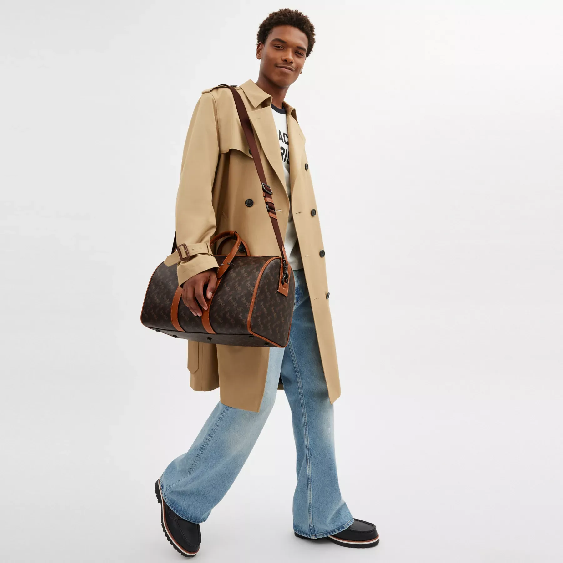 A bag as distinct as its namesake city, the Gotham is a sleek no-fuss carryall. With inside multifunction pockets for easy organization and a convenient outside pocket for access to essentials, this spacious Duffle 45 features an open interior with room for a 16” laptop, sneakers, clothes and more. Crafted of refined leather and durable coated canvas printed with our iconic Horse and Carriage motif, it’s secured by a zip closure and finished with a detachable strap for shoulder or crossbody wear.