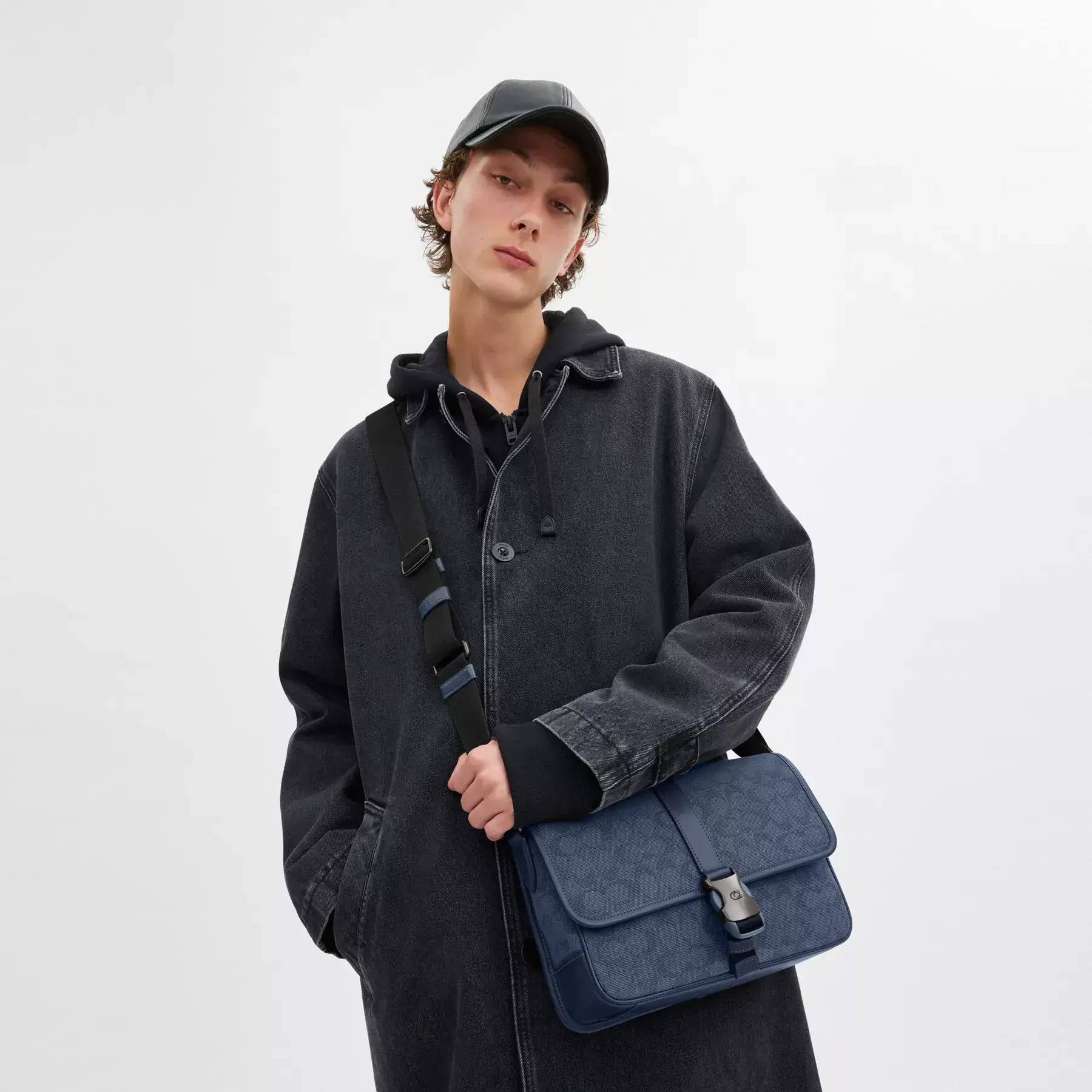 Made for a life in constant motion, the League keeps your game plan on track. Crafted of refined leather and our durable Signature canvas jacquard created from certified organic cotton made without the use of harmful chemical fertilizers or pesticides, this streamlined messenger bag has an open interior compartment with room for a tablet, multifunction pockets for organizing gadgets and an exterior pocket for easy access to essentials. It’s finished with our Signature speedclip closure and an adjustable strap for hands-free convenience.