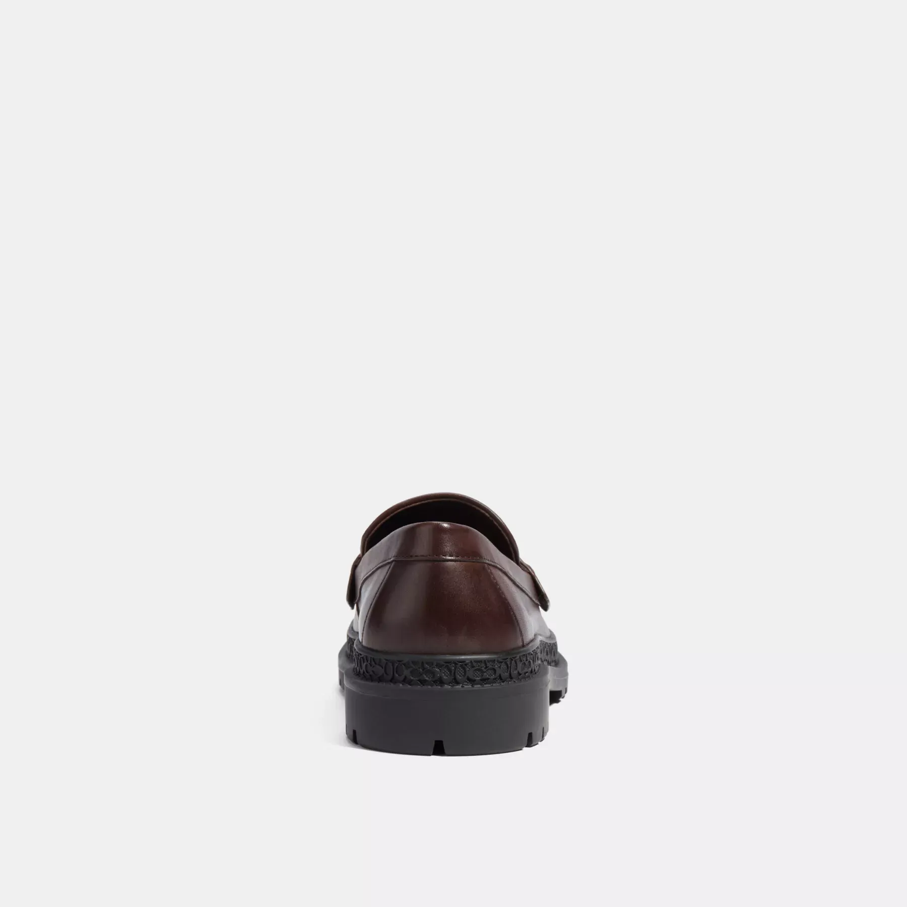 A modern twist on the classic style, this loafer is updated with an elevated platform and a penny keeper detailed with our Signature coin for an iconic Coach look. Finished with a rubber sole for all-day comfort and durability, it’s crafted of smooth leather and our environmentally conscious Signature jacquard made from a blend of organic cotton and recycled plastic bottles.