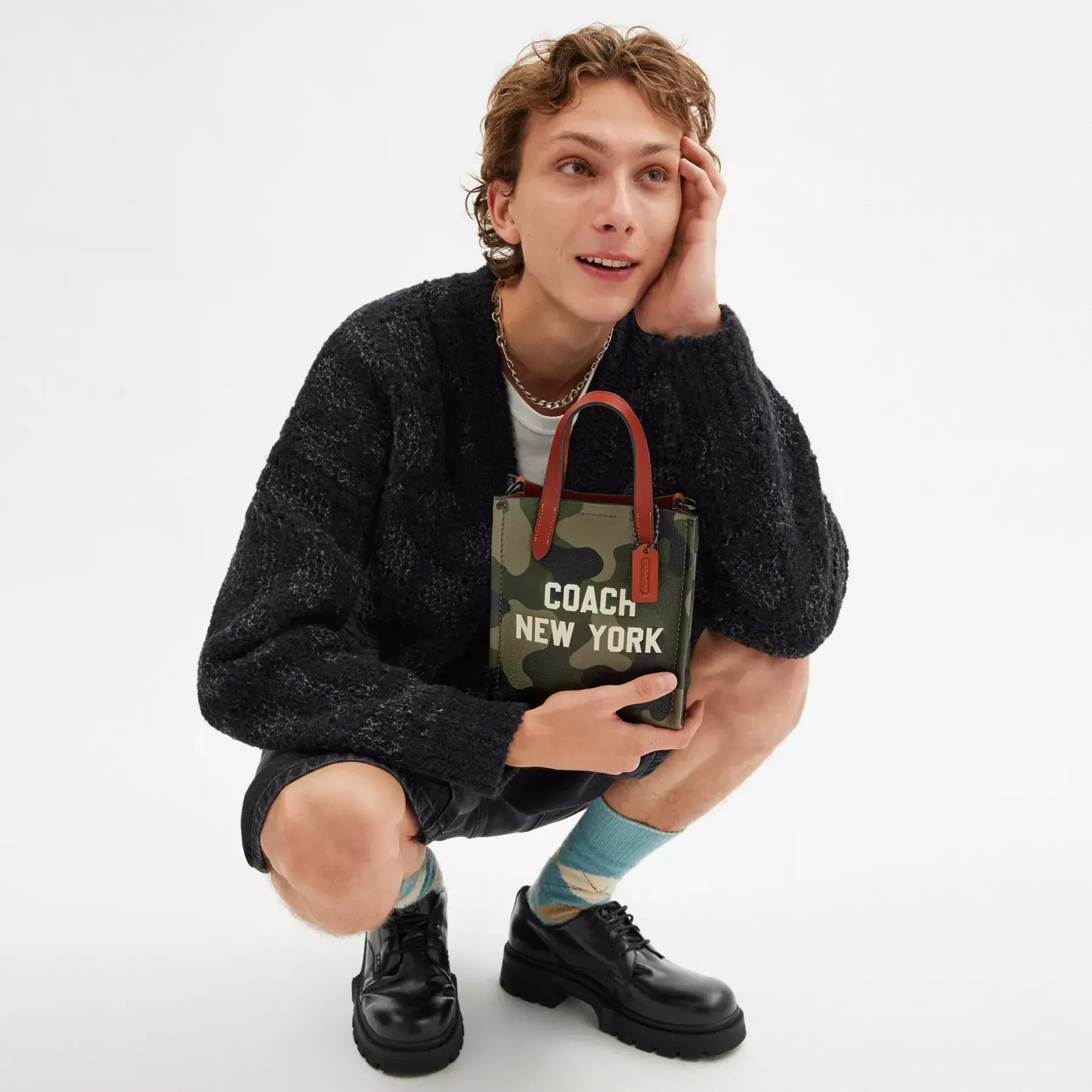 - Digitally printed pebble leather, vegetable-tanned leather and pebble leather