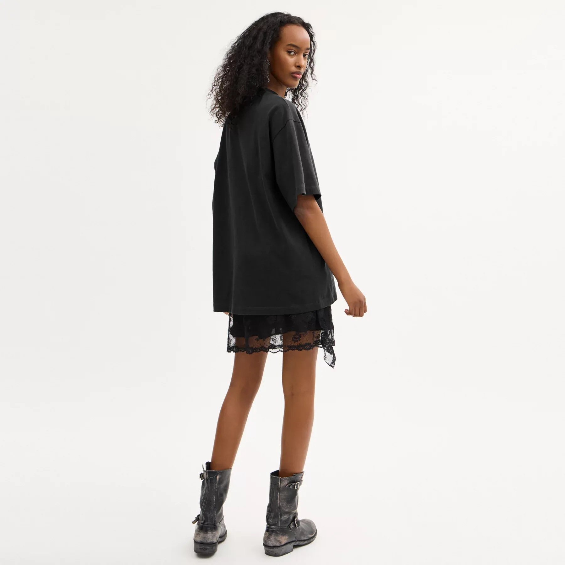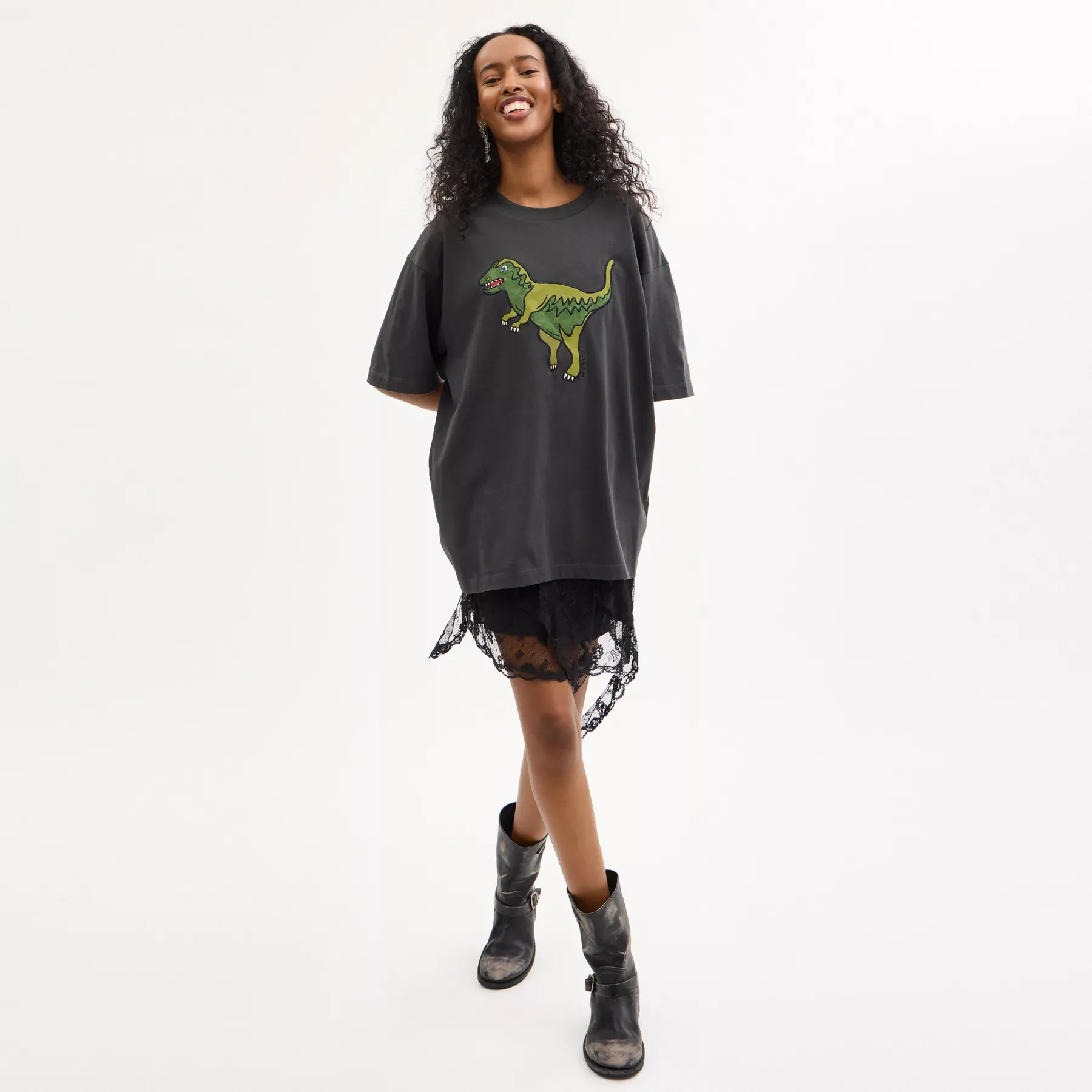 ,Fun-loving Coach mascot Rexy is front and center on this soft T-shirt crafted of organic cotton made without the use of harmful chemical fertilizers and pesticides. The crewneck is designed with a relaxed-fit.