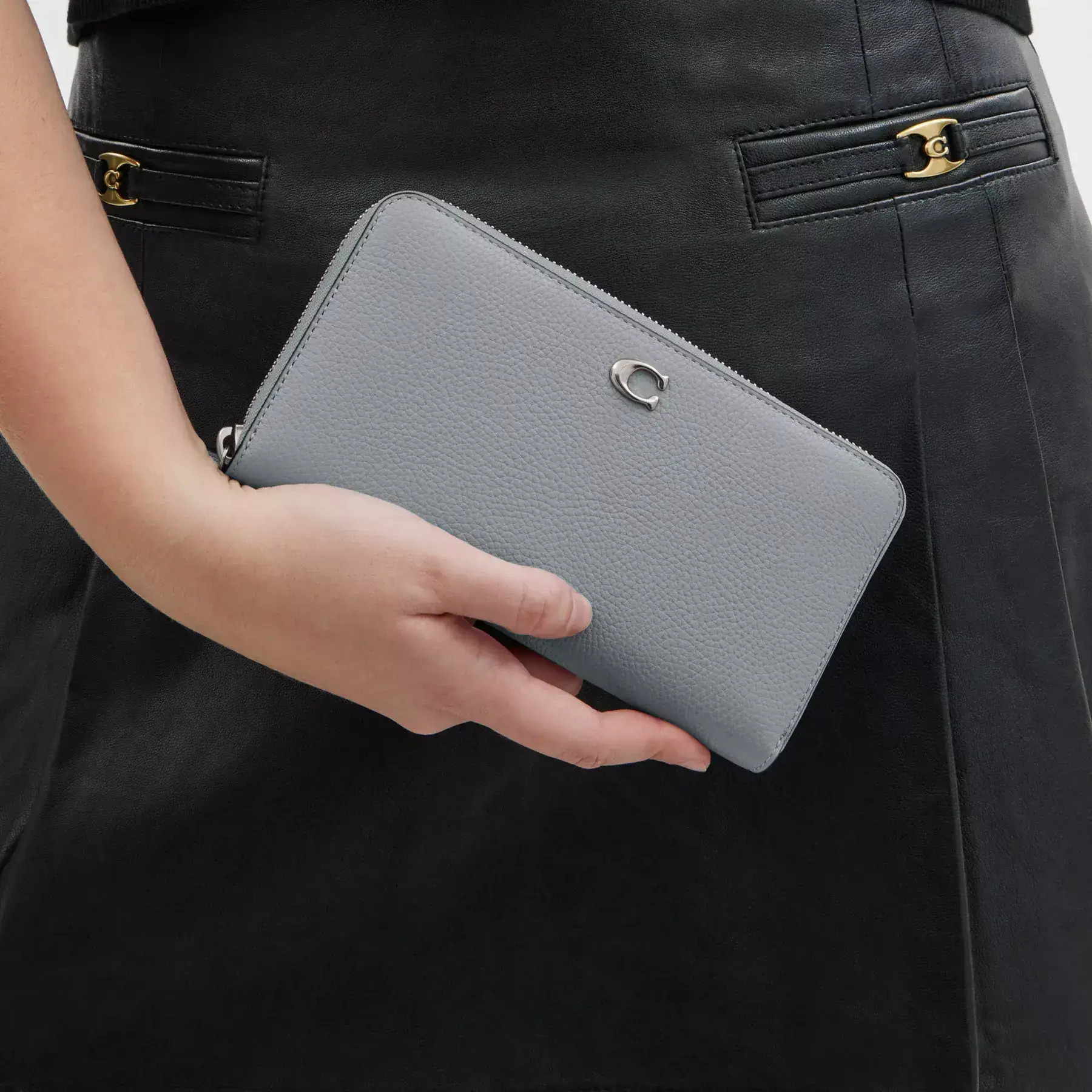Crafted of polished pebble leather detailed with our Signature hardware, this expandable design unzips to reveal a spacious interior. It holds an iPhone X and features 12 card slots, two full-length bill compartments and a coin purse to keep essentials organized.