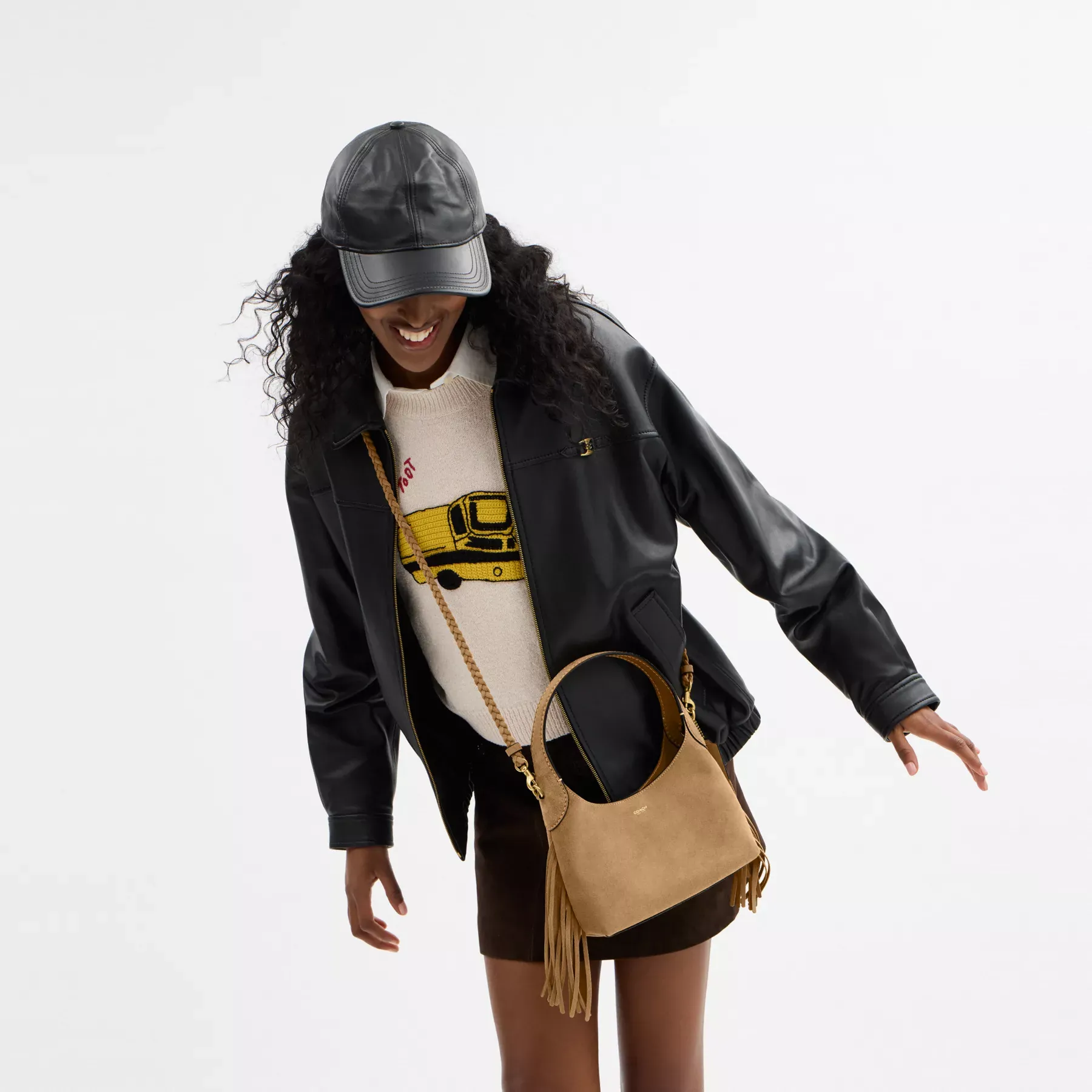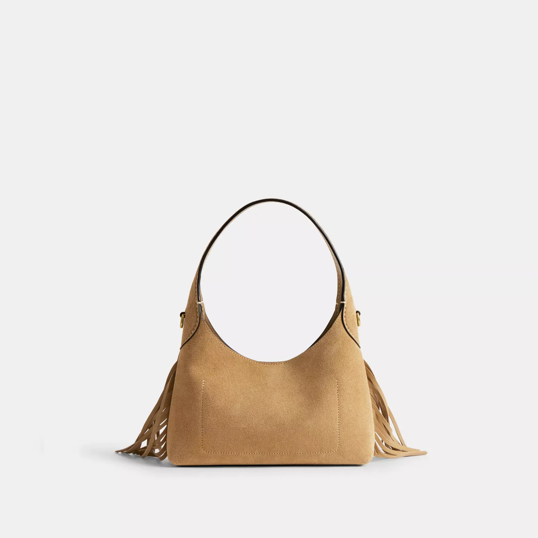 Our Brooklyn is an elegant, minimalist silhouette—with a distinctly New York attitude. A compact design with an easy magnetic closure, the hobo style 23 is crafted of velvety suede and detailed with swingy bohemian-inspired fringe trim. Featuring room for the essentials and a multifunction pocket for organization, carry it by hand or attach the elegant chain strap to wear on the shoulder or crossbody.