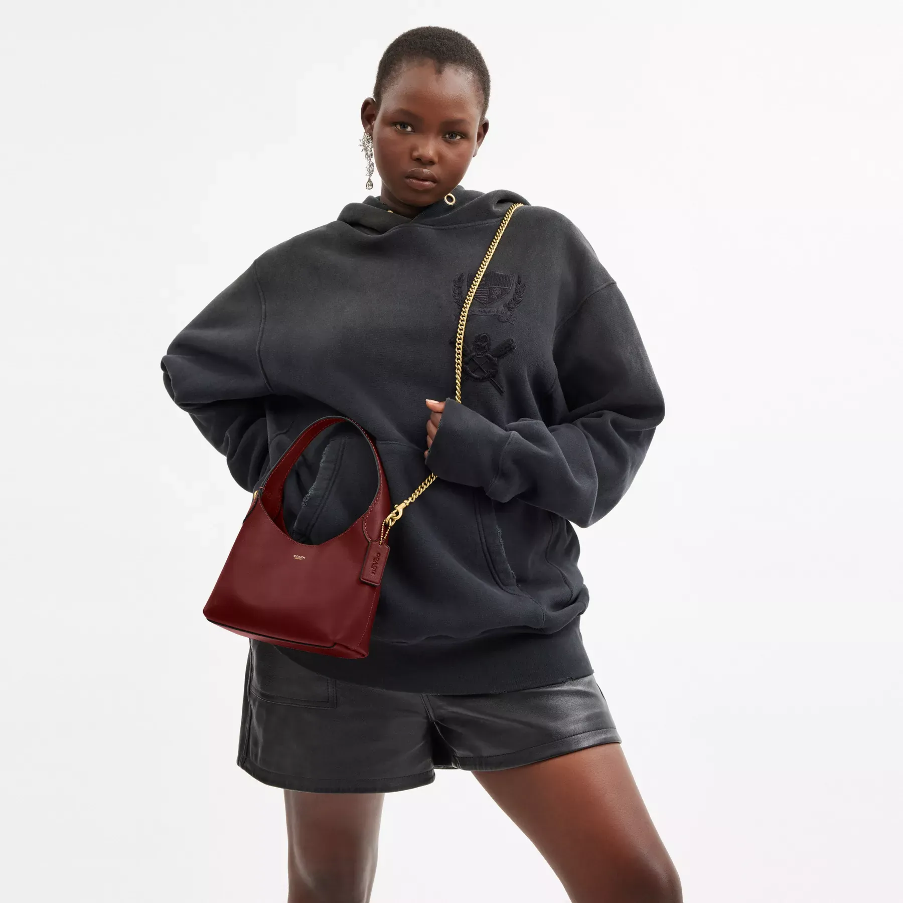 Our Brooklyn is an elegant, minimalist silhouette—with a distinctly New York attitude. A compact silhouette with an easy magnetic closure, the hobo style is crafted of natural grain leather with beautiful texture and soft feel. Featuring room for the essentials and a multifunction pocket for organization, carry it by hand or attach the elegant chain strap to wear on the shoulder or crossbody.