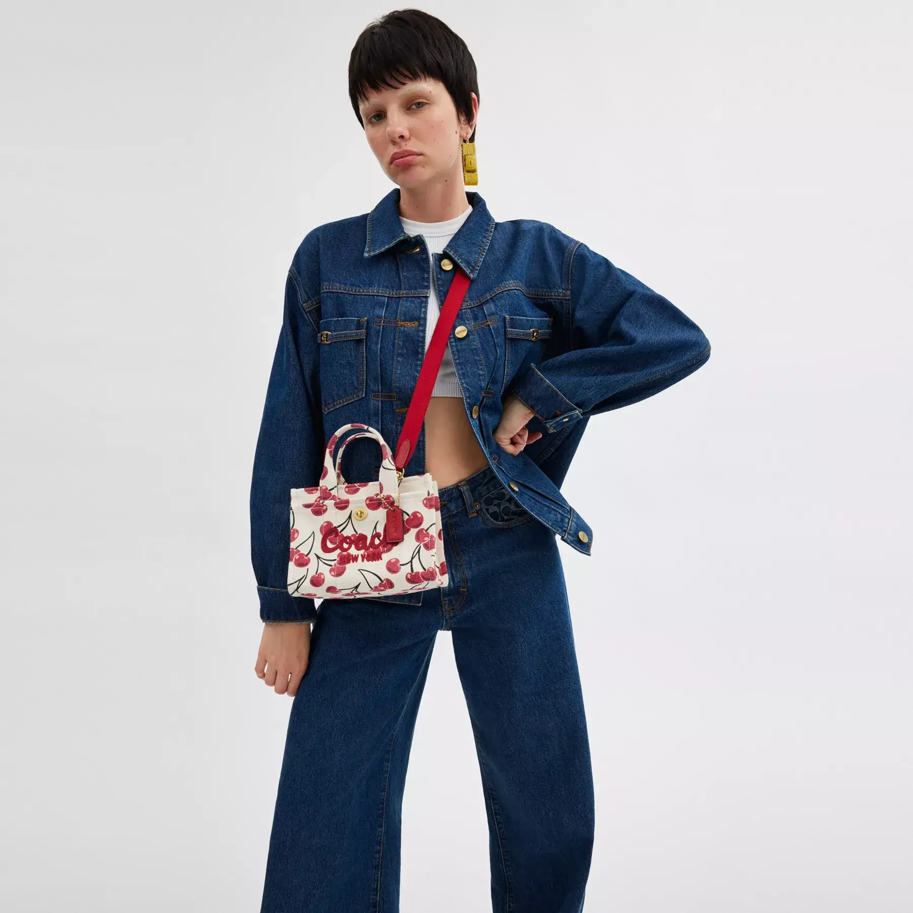 Carry as much (or as little) as you like with our lightweight Cargo tote. Detailed with our cursive Coach script embroidery and iconic turnlock closure, this petite 20 has an open interior with room for a phone, two outside pockets for easy organization and a removable webbing strap for shoulder or crossbody wear. Printed with a cheerful cherry motif, this versatile canvas style is crafted with 100% cotton* sourced from farms that use regenerative agricultural practices—those that help to maintain and rejuvenate land, increase biological diversity and soil health, and could lead to increased carbon absorption. It’s inspired by our commitment to reducing our impact on the planet. Now no matter where you go with it, you’ll always be toting around a little extra love for the planet.