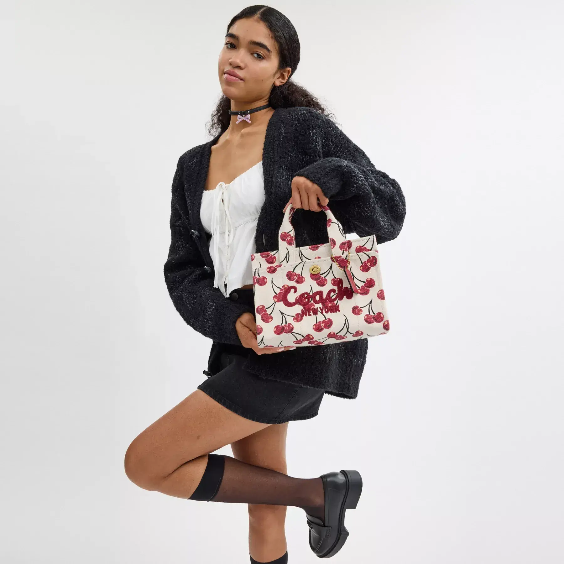 Carry as much (or as little) as you like with our lightweight Cargo tote. Detailed with our cursive Coach script embroidery and iconic turnlock closure, this compact 26 has an open interior with room for an iPad, two outside pockets for easy organization and a removable webbing strap for shoulder or crossbody wear. Printed with a cheerful cherry motif, this versatile canvas style is crafted with 100% cotton* sourced from farms that use regenerative agricultural practices—those that help to maintain and rejuvenate land, increase biological diversity and soil health, and could lead to increased carbon absorption. It’s inspired by our commitment to reducing our impact on the planet. Now no matter where you go with it, you’ll always be toting around a little extra love for the planet.