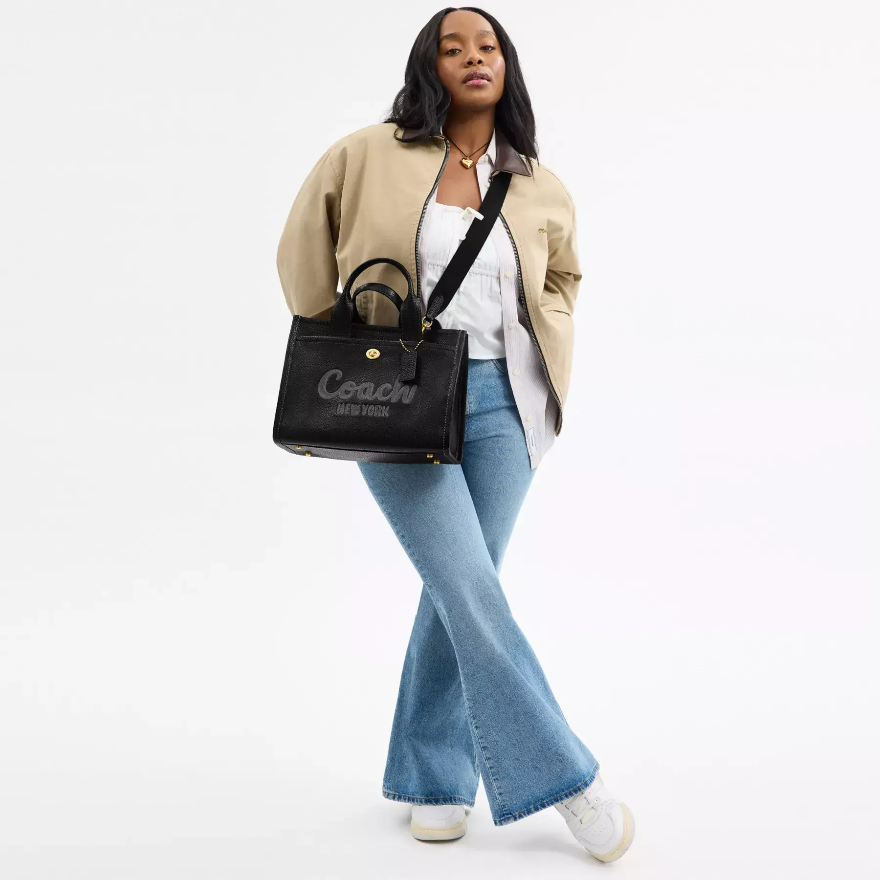 Carry as much (or as little) as you like with our lightweight Cargo tote. Detailed with our cursive Coach script embroidery and iconic turnlock closure, this spacious carryall is crafted of embossed pebble leather. It has an open interior with room for a 13″ laptop, two outside pockets for easy organization and a removable recycled polyester webbing strap for shoulder or crossbody wear.