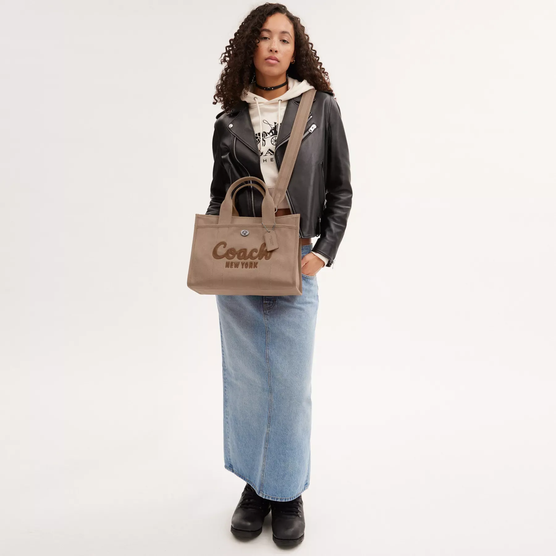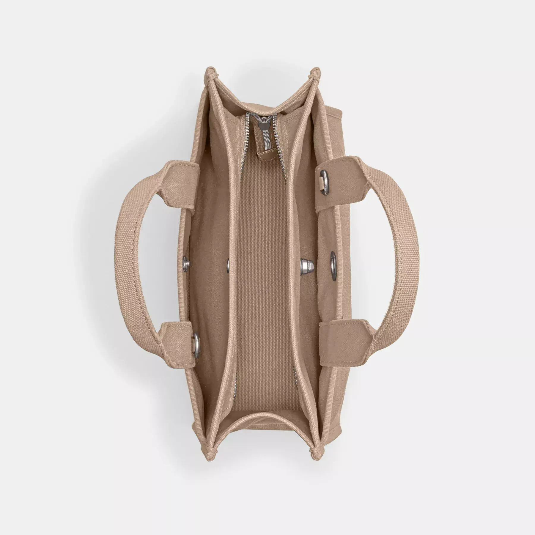 Carry as much (or as little) as you like with our lightweight Cargo tote. Detailed with our cursive Coach script embroidery and iconic turnlock closure, this spacious carryall has an open interior with room for a 13″ laptop, two outside pockets for easy organization and a removable webbing strap for shoulder or crossbody wear. Crafted to last, this versatile style is made with cotton sourced from farms that use regenerative agricultural practices* and inspired by our commitment to reducing our impact on the planet. Now no matter where you go with it, you’ll always be toting around a little extra love for the planet.