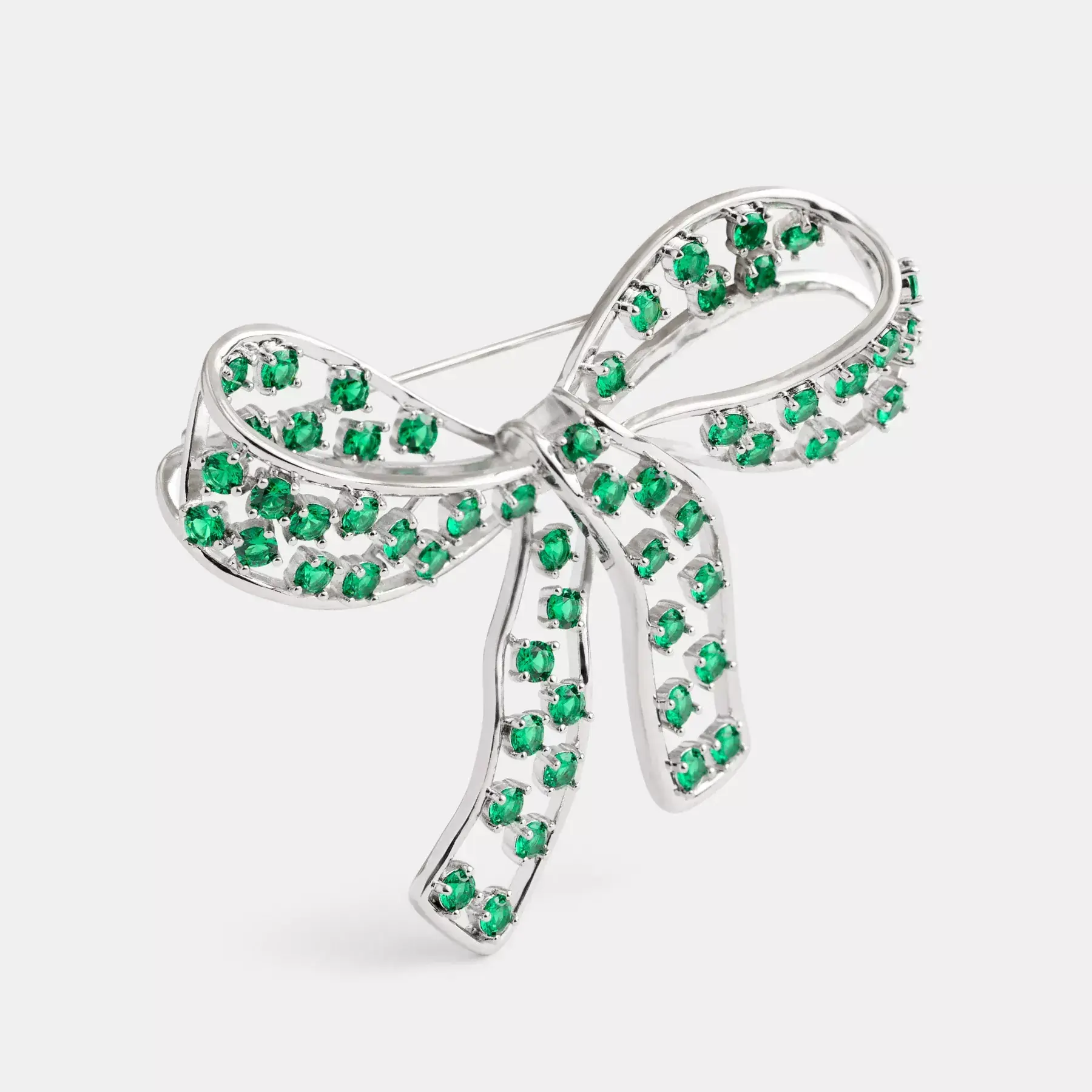 The perfect finishing touch to any look, this dazzling bow brooch sparkles with pavé crystals. Pin it to a blouse for a fun pop of color.