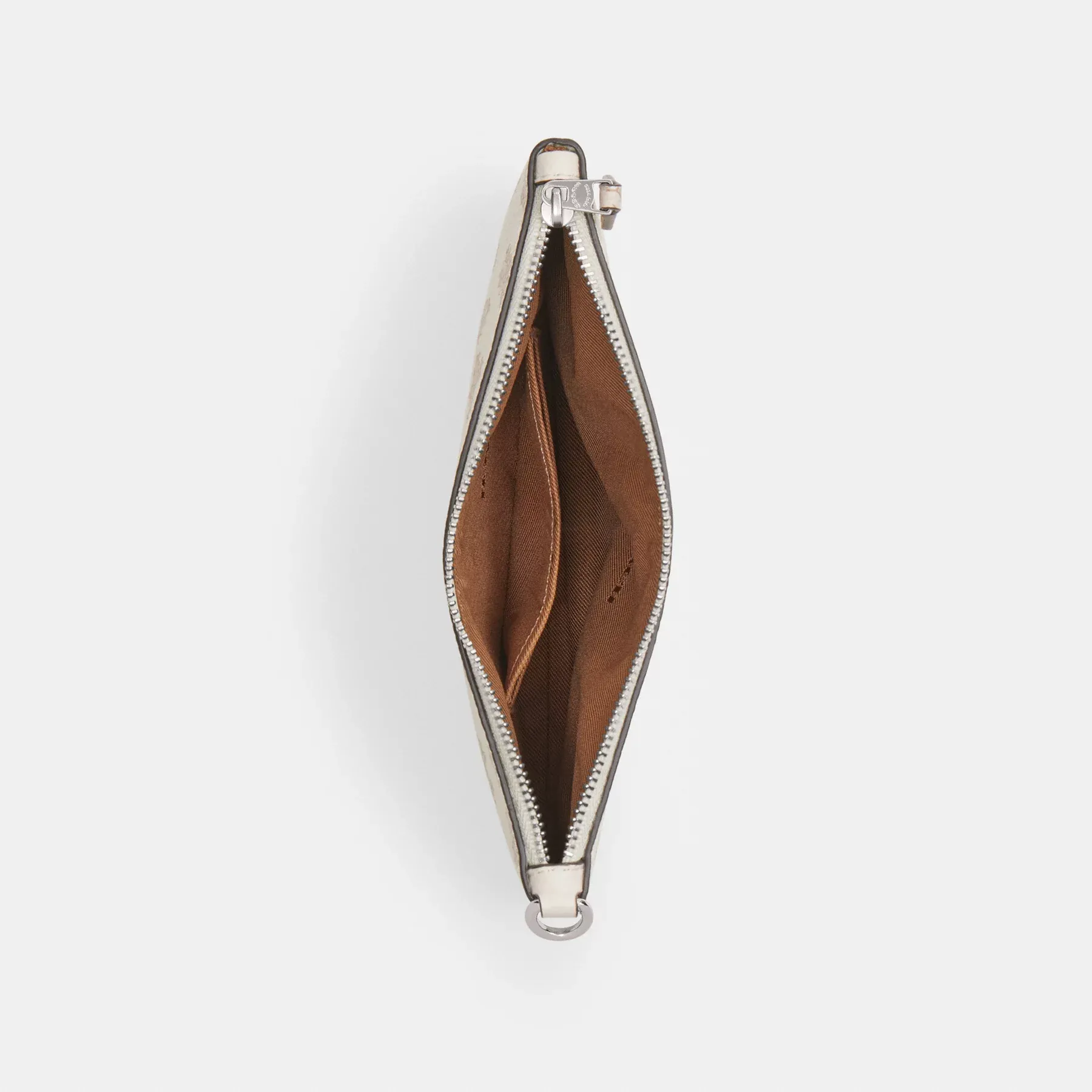 Crafted of polished pebble leather and sturdy coated canvas featuring our tonal mini rose floral print, this wristlet is perfectly sized for cards, cash and a phone. Finished with our Signature hardware, wear it on your wrist or clip it inside a larger Coach bag.