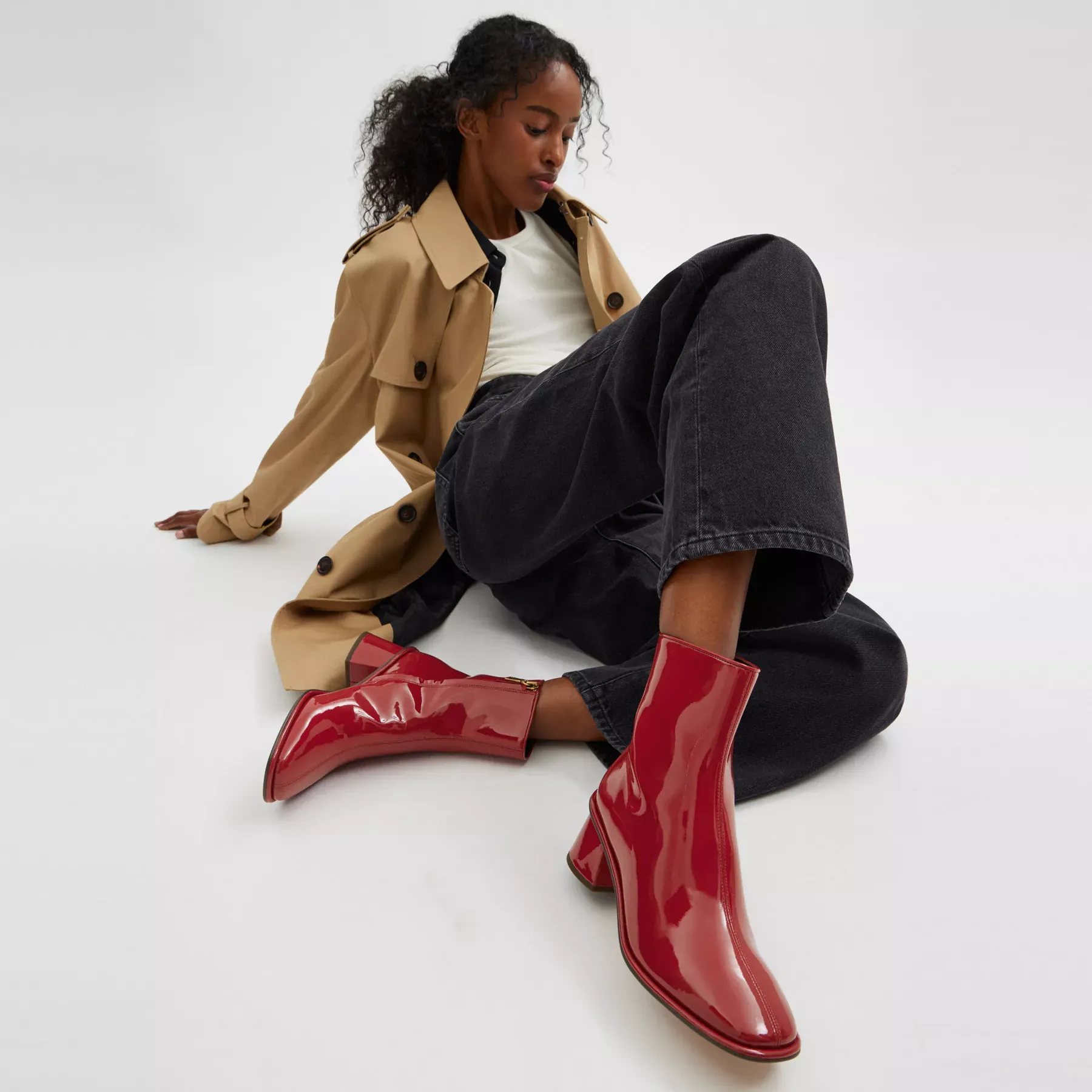 ,A sleek, modern style for every day, our Gigi bootie features a walkable block heel and polished hardware. Crafted of high-shine patent leather, it’s finished with a side zip closure and padded footbed for added comfort.