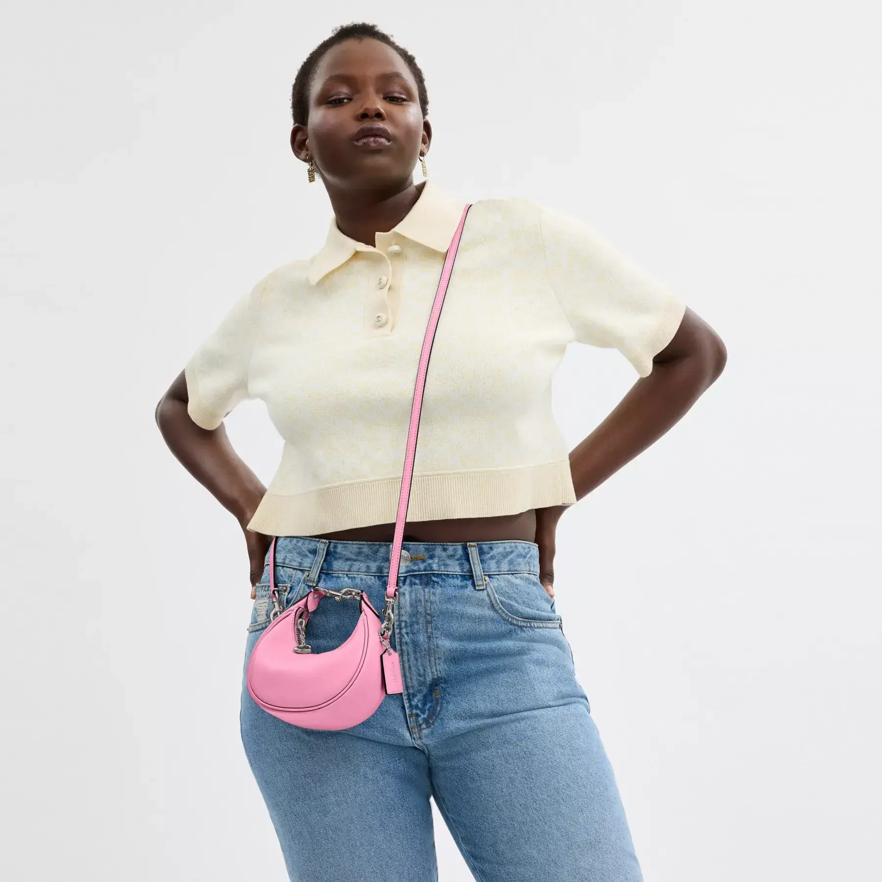 Ahead of the curve, our Jonie is a rounded style that’s part crescent silhouette, part hobo and all attitude. The compact style is crafted of buttery soft glovetanned leather and finished with a secure zip-top closure detailed with our C hardware. Carry by hand and wear as a wristlet with the interlocking top handle for nights out or add the detachable leather crossbody strap for days on the go. (Explore the possibilities.)