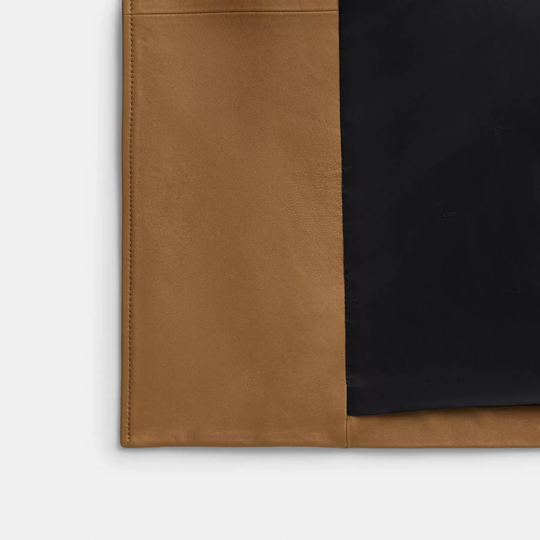 ,A luxurious take on an iconic style, this relaxed-fit trench coat is crafted of soft, supple leather. The double-breasted silhouette is finished with shoulder epaulettes, slip pockets, belted cuffs and a back vent for ease of movement.