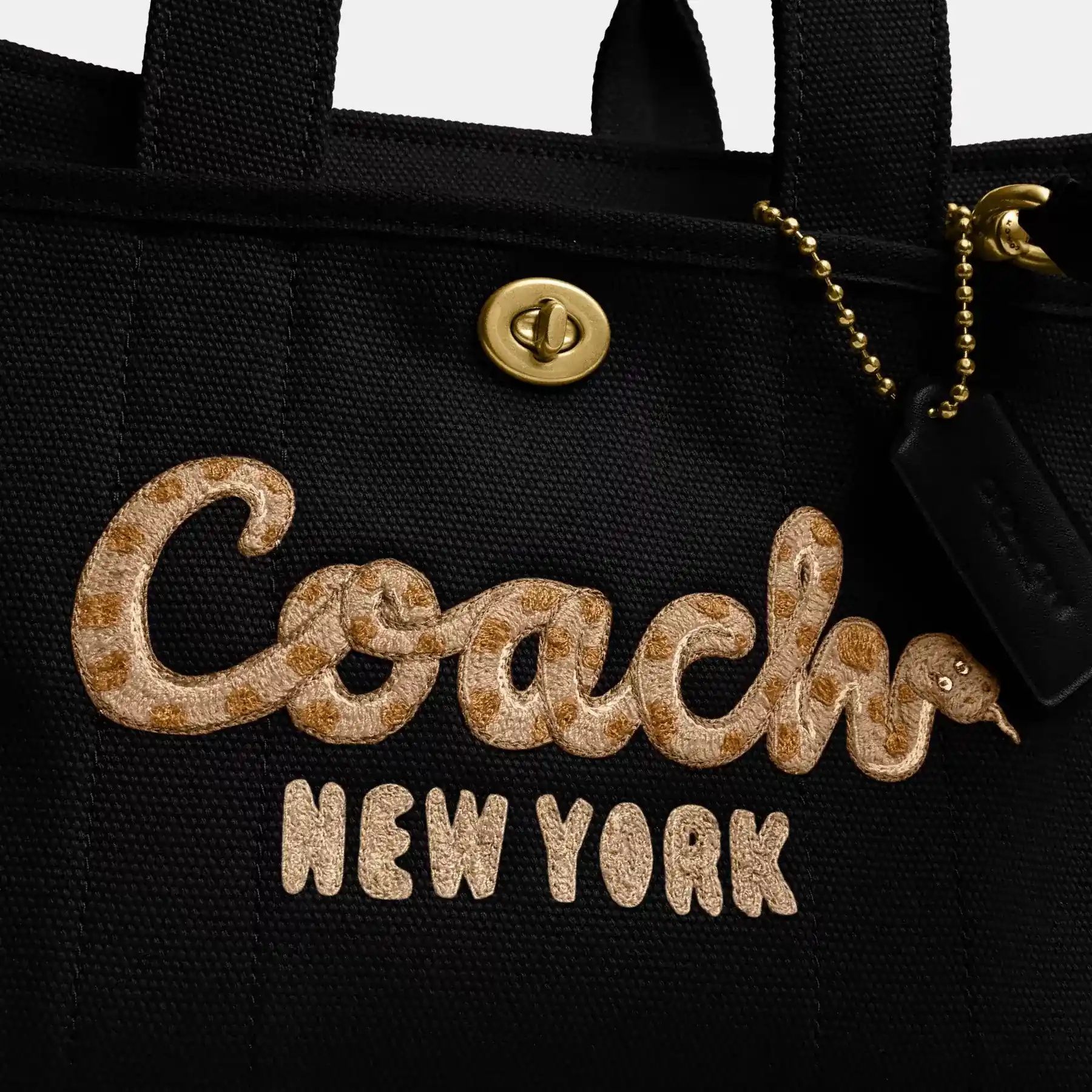 Celebrate 2025 Year of the Snake with our special New Year collection. Carry as much (or as little) as you like with our lightweight Cargo tote. Detailed with our iconic turnlock closure and embroidered cursive Coach script with a serpentine twist, the compact 26 has an open interior with room for an iPad, two outside pockets for easy organization and a removable webbing strap for shoulder or crossbody wear. This versatile canvas style is crafted with 100% cotton* sourced from farms that use regenerative agricultural practices—those that help to maintain and rejuvenate land, increase biological diversity and soil health, and could lead to increased carbon absorption. It’s inspired by our commitment to reducing our impact on the planet. Now no matter where you go with it, you’ll always be toting around a little extra love for the planet.