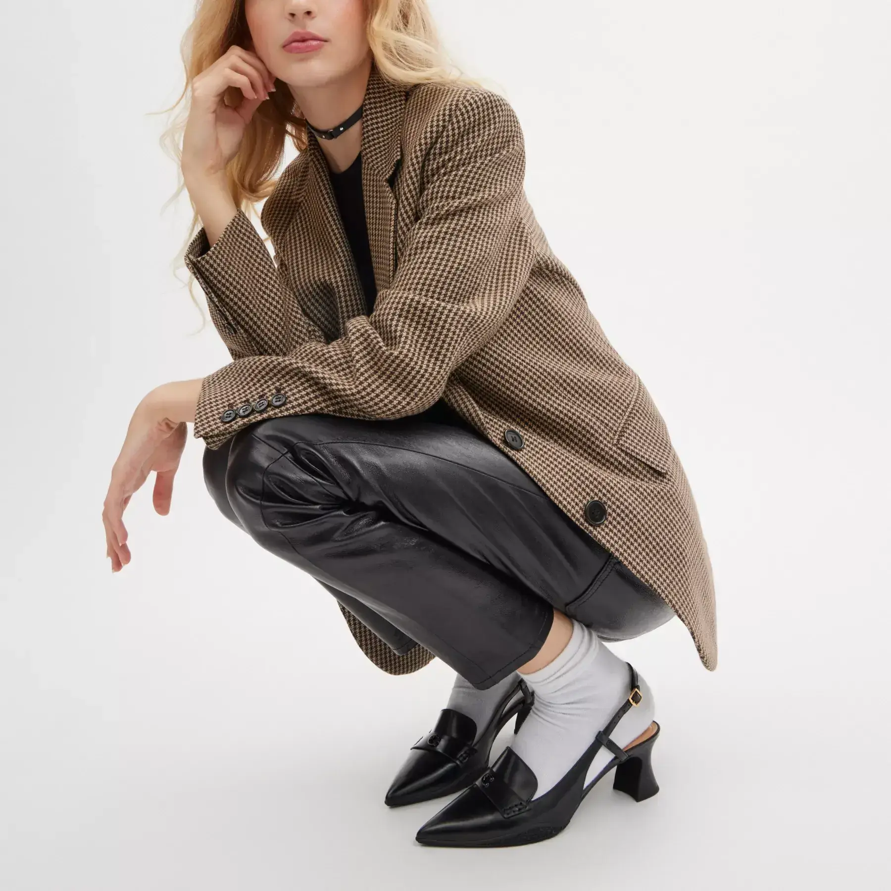 ,A sporty twist on a classic style, our smooth leather Nikola slingback combines form and function with a comfortable padded footbed and a durable rubber outsole. A sleek day-to-night design, the pointed-toe silhouette is finished with a walkable sculpted heel and our tonal Signature for a heritage touch.