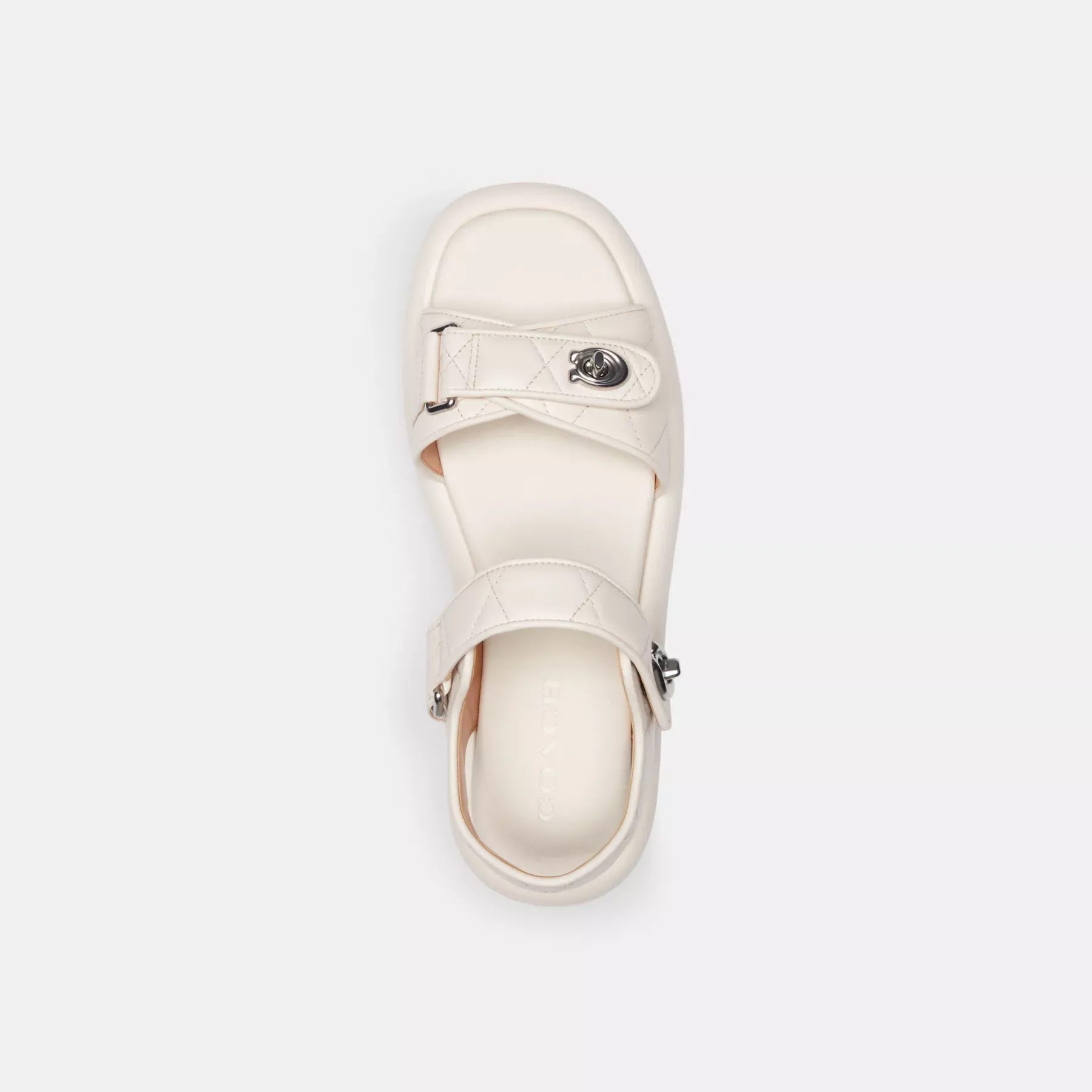 ,Both luxe and sporty, the Peyton sandal is crafted of plush quilted leather and features a cushiony footbed for all day comfort. The two-strap style is finished with our Signature turnlock closures for a heritage touch.