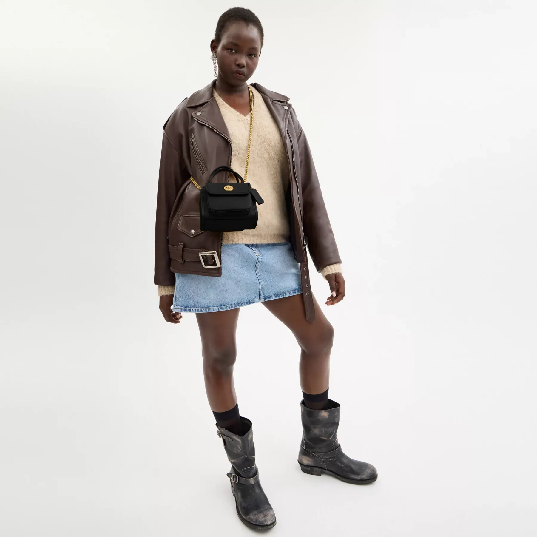 • Detachable chain strap with 56cm drop for shoulder or crossbody wear