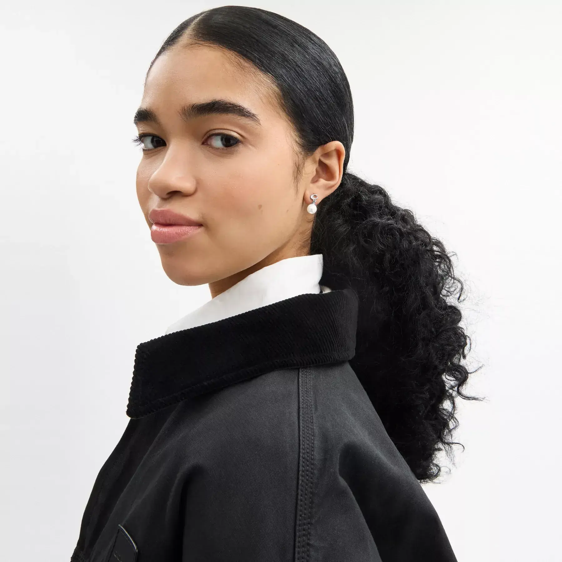These minimalist clip-on drop earrings feature a luminous glass pearl dangling from our Signature stud. They add a subtle heritage touch to any look.