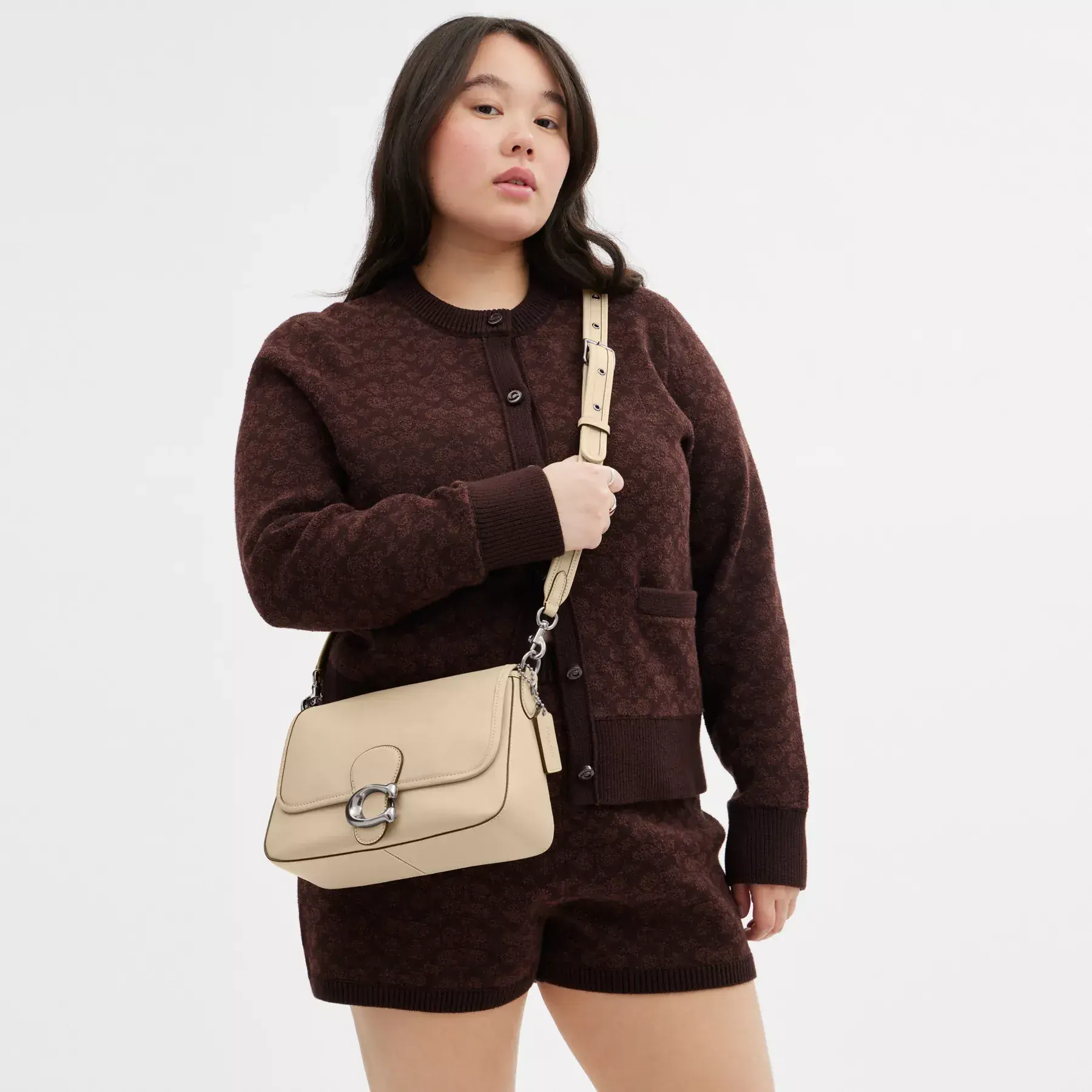 The Soft Tabby reimagines our structured take on an archival 1970s Coach design with a slouchy relaxed feel. Finished with our Signature hardware for an iconic touch, this smooth leather shoulder bag features zip pockets inside and out to organize small accessories and two detachable straps to carry by hand, style as a short shoulder bag or wear crossbody.