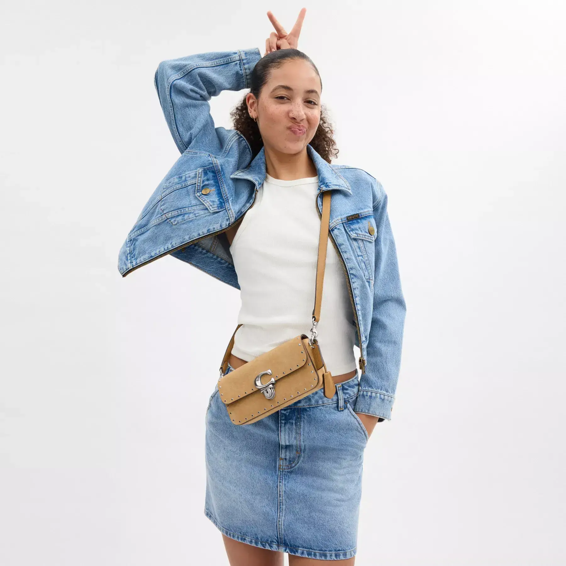 A timeless style that you’ll love (and wear) for years to come, this aptly named bag was dreamed up in the Coach Design Studio. Finished with striking polished rivets and an archive-inspired Signature push-lock closure, this baguette bag is crafted of velvety suede and glovetanned leather with plenty of pockets to keep you organized on the go. Detachable straps let you carry by hand, style as a short shoulder bag or wear crossbody. (Feels good to feel put-together, doesn’t it?)