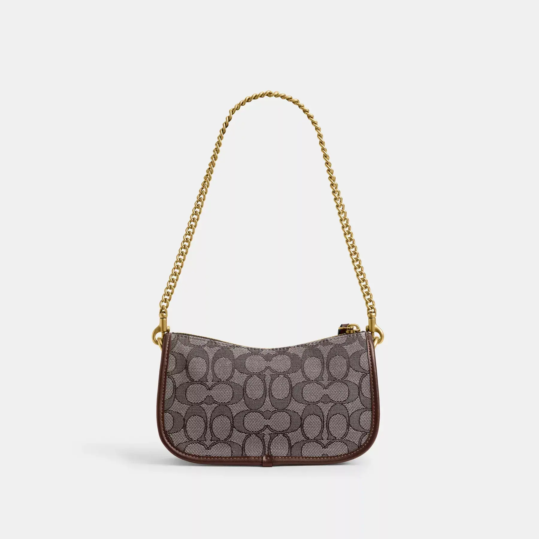 The Swinger 20 Bag is part of The Coach Originals, a collection of archival-inspired bags that celebrates our legacy and authentic New York heritage. Crafted of our lightweight Signature jacquard, this streamlined style is based on a 1980s Coach design reimagined for today. Featuring our iconic turnlock closure, the petite bag sits just beneath the underarm with the short chain strap or it can be carried as a clutch. Some styles are just too good to leave in the archives.