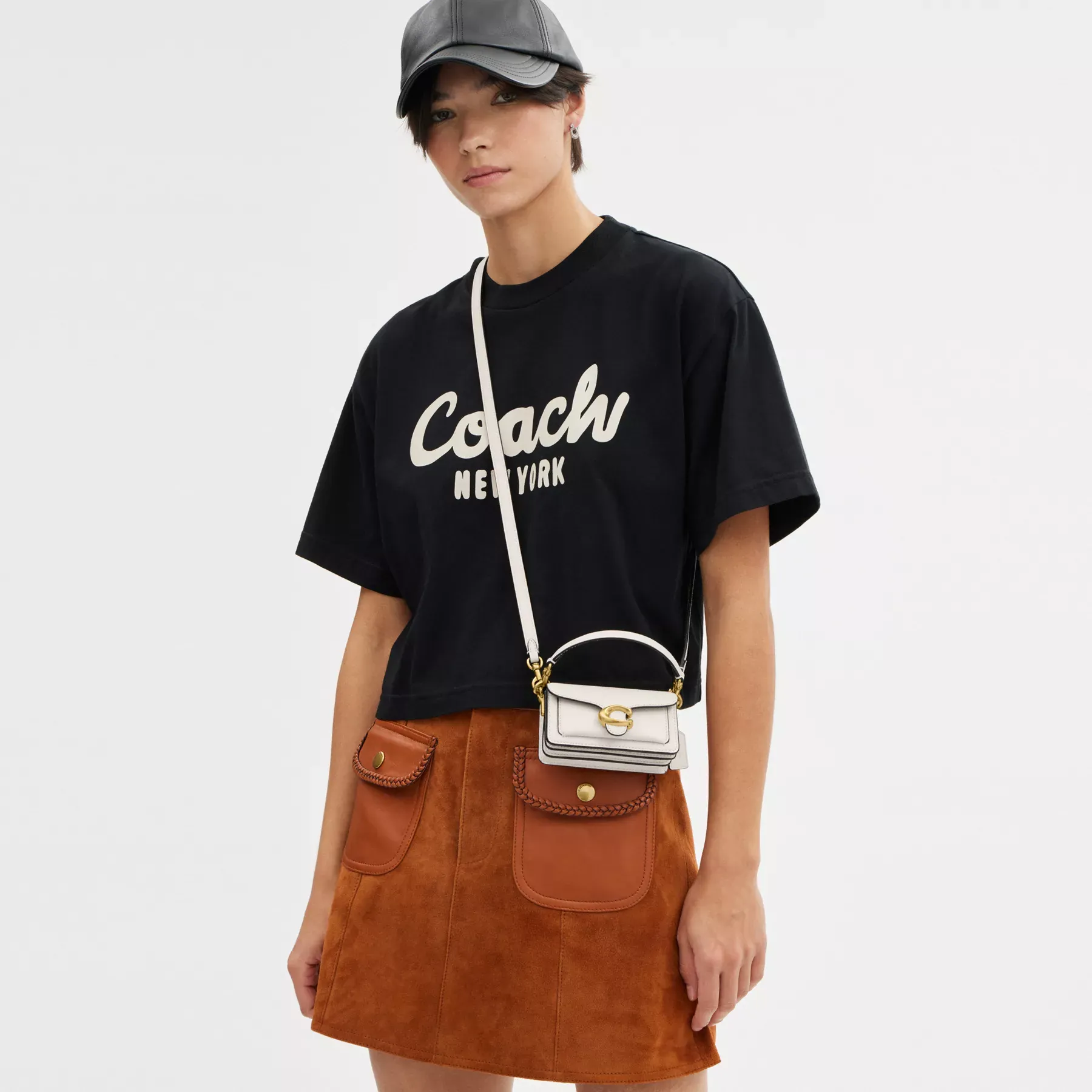 Mini me. We made a scaled down version of our customer-favorite Tabby bag with all of the same details as the original. Finished with our Signature hardware for an iconic touch, it’s crafted of our textured polished pebble leather. The versatile design features two detachable straps to carry by hand or wear crossbody and a dual gusset interior to organize cash, cards, ear buds, and keys. (Great things come in small packages.)