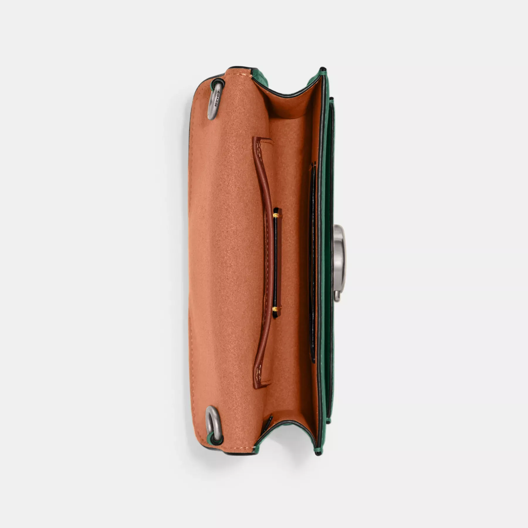 A modern take on an archival 1970s Coach design, our structured Tabby wristlet is crafted of polished pebble leather. Finished with our Signature hardware, it’s perfectly sized for cards, cash and a phone with an exterior slip pocket for easy access to essentials. The versatile style can be carried as a wristlet or a clutch and worn crossbody with the elegant chain strap, making it the perfect choice for both dressed up and casual looks.