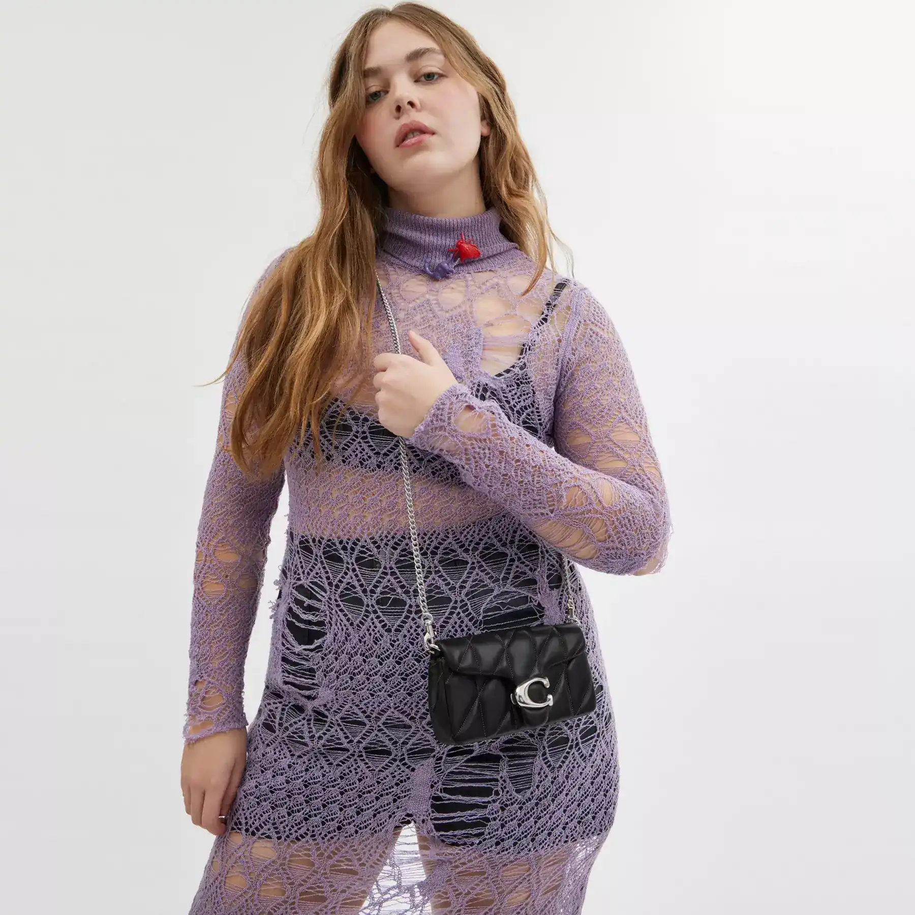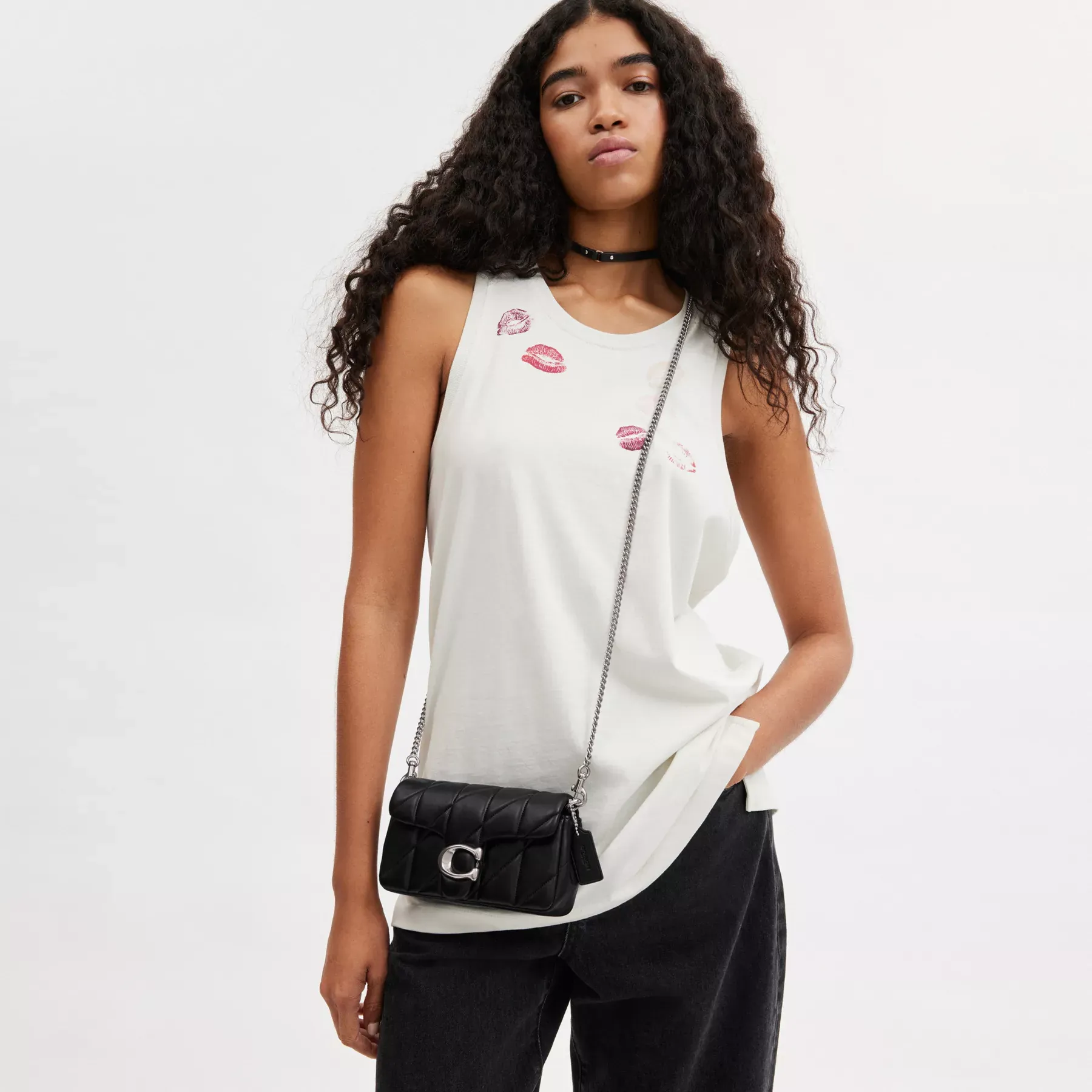 A modern take on an archival 1970s Coach design, our Tabby Wristlet is crafted of quilted plush, ultra-soft nappa leather. The versatile style is perfectly sized for cards, cash and a phone with an exterior slip pocket for easy access to essentials. Finished with our Signature hardware for an iconic touch, it can be carried as a wristlet or a clutch and worn crossbody with the elegant chain strap.