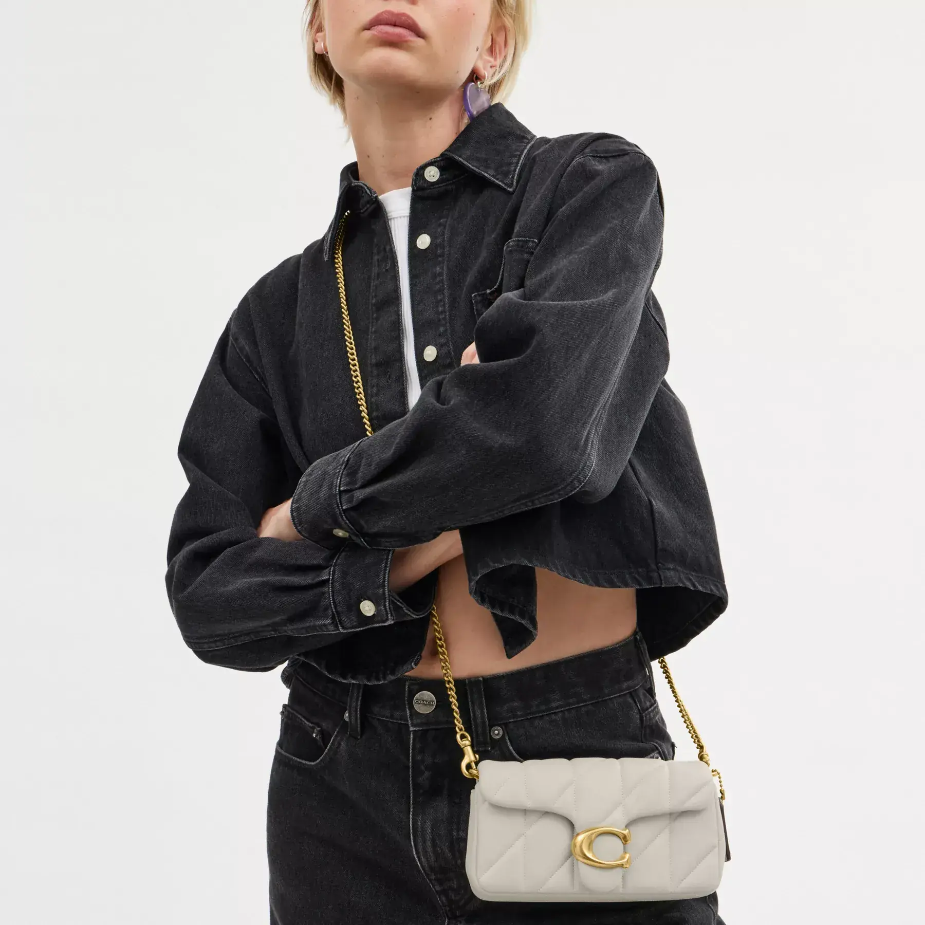 A modern take on an archival 1970s Coach design, our Tabby Wristlet is crafted of quilted plush, ultra-soft nappa leather. The versatile style is perfectly sized for cards, cash and a phone with an exterior slip pocket for easy access to essentials. Finished with our Signature hardware for an iconic touch, it can be carried as a wristlet or a clutch and worn crossbody with the elegant chain strap.