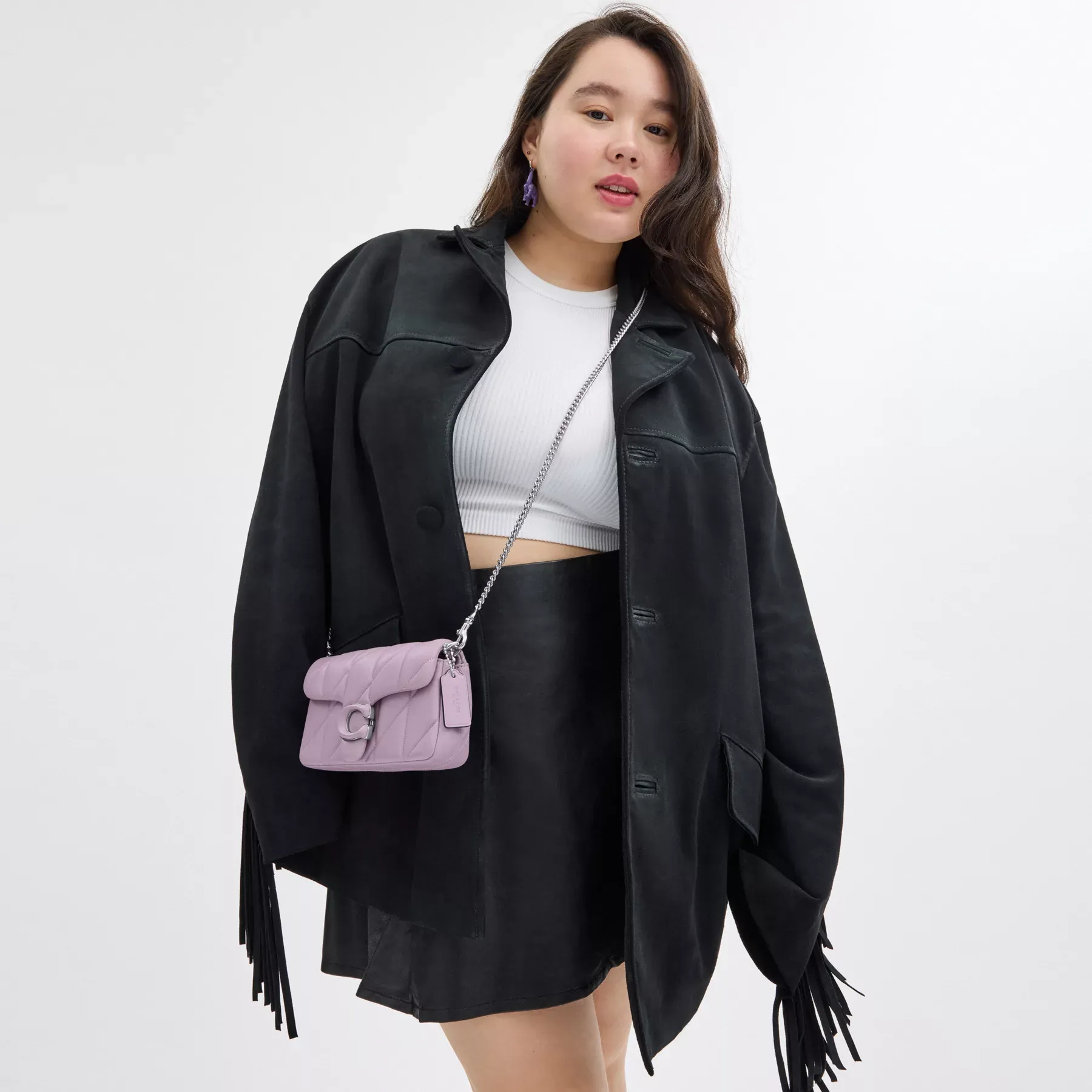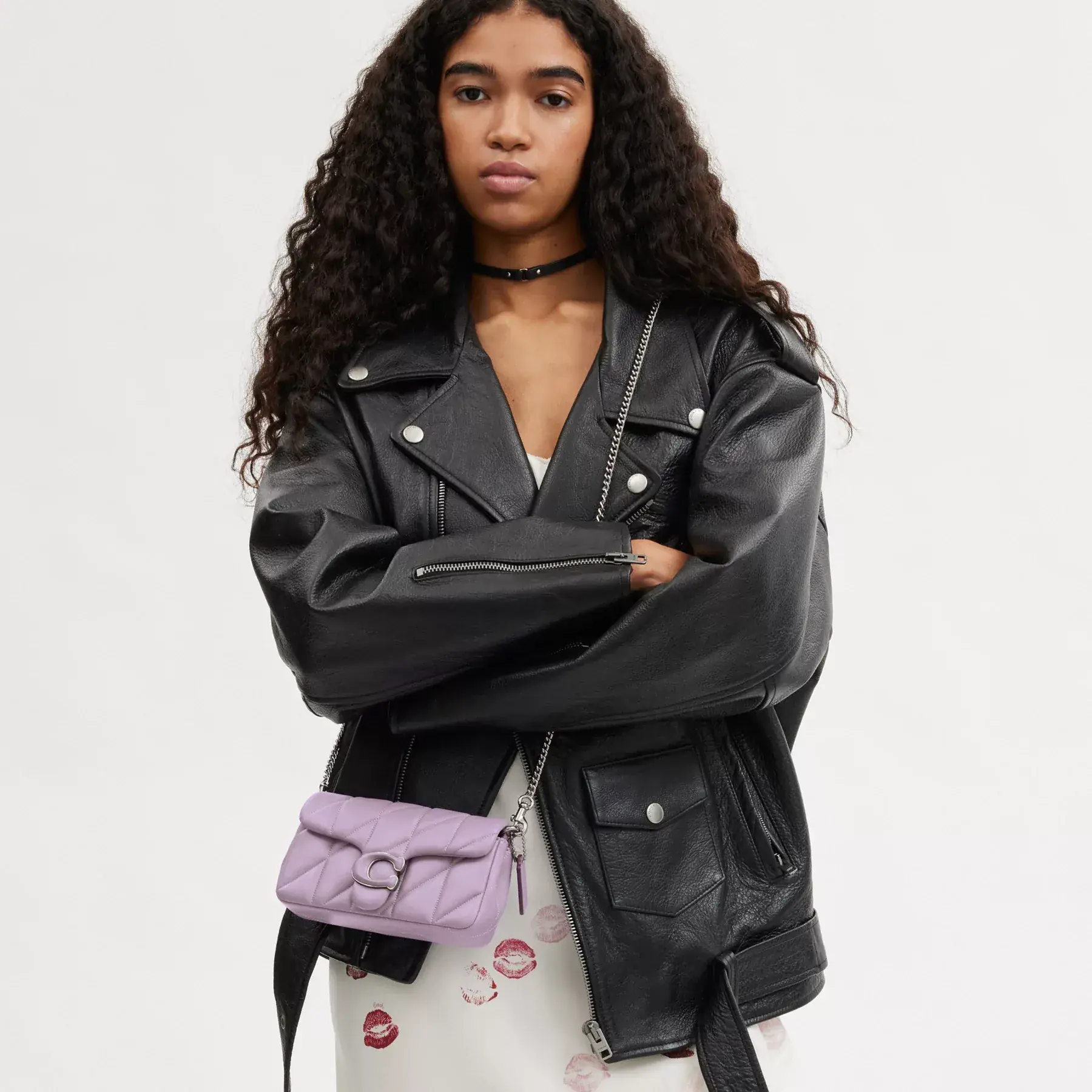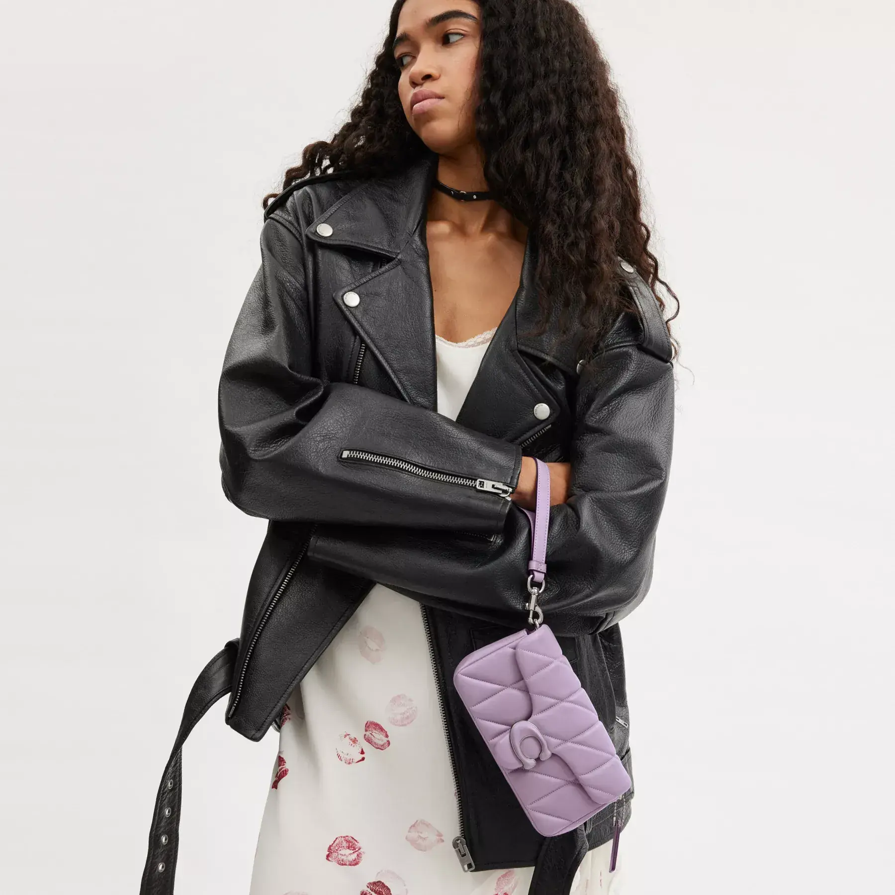 A modern take on an archival 1970s Coach design, our Tabby Wristlet is crafted of quilted plush, ultra-soft nappa leather. The versatile style is perfectly sized for cards, cash and a phone with an exterior slip pocket for easy access to essentials. Finished with our Signature hardware for an iconic touch, it can be carried as a wristlet or a clutch and worn crossbody with the elegant chain strap.