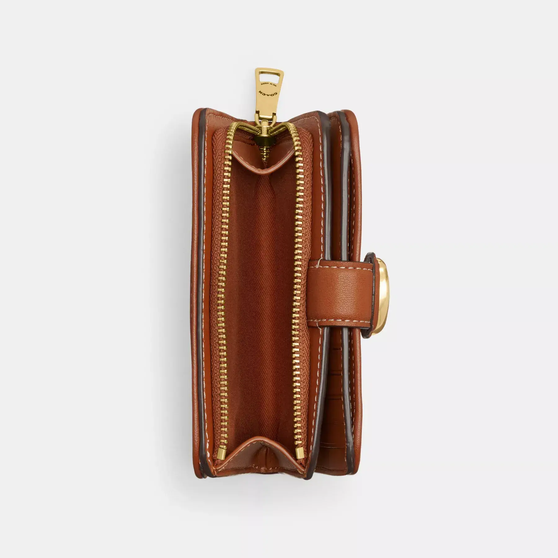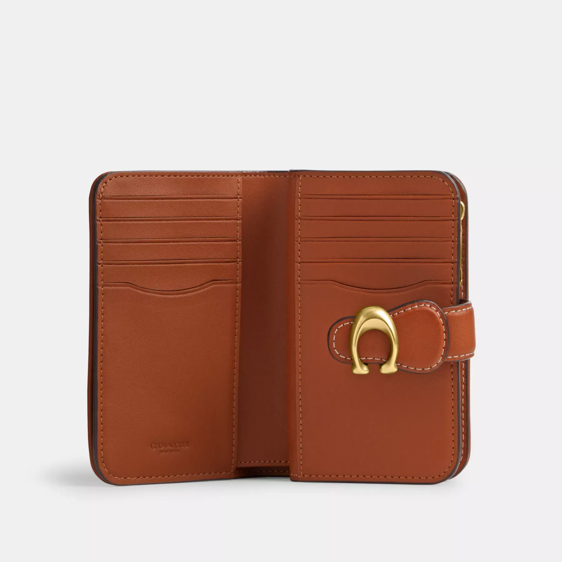 The Tabby medium wallet is a modern take on an archival 1970s Coach design. It’s crafted of buttery soft glovetanned leather and our Micro Signature Jacquard made with recycled polyester and cotton sourced from farms that use regenerative agricultural practices—those that help to maintain and rejuvenate land, increase biological diversity and soil health, and could lead to increased carbon absorption. It reflects our ongoing commitment to helping reduce our impact on the planet. Featuring a convenient exterior zip pocket for coins, receipts, earbuds and other small essentials, the bi-fold design unsnaps to reveal ten card slots, slip pockets and a full-length bill compartment.