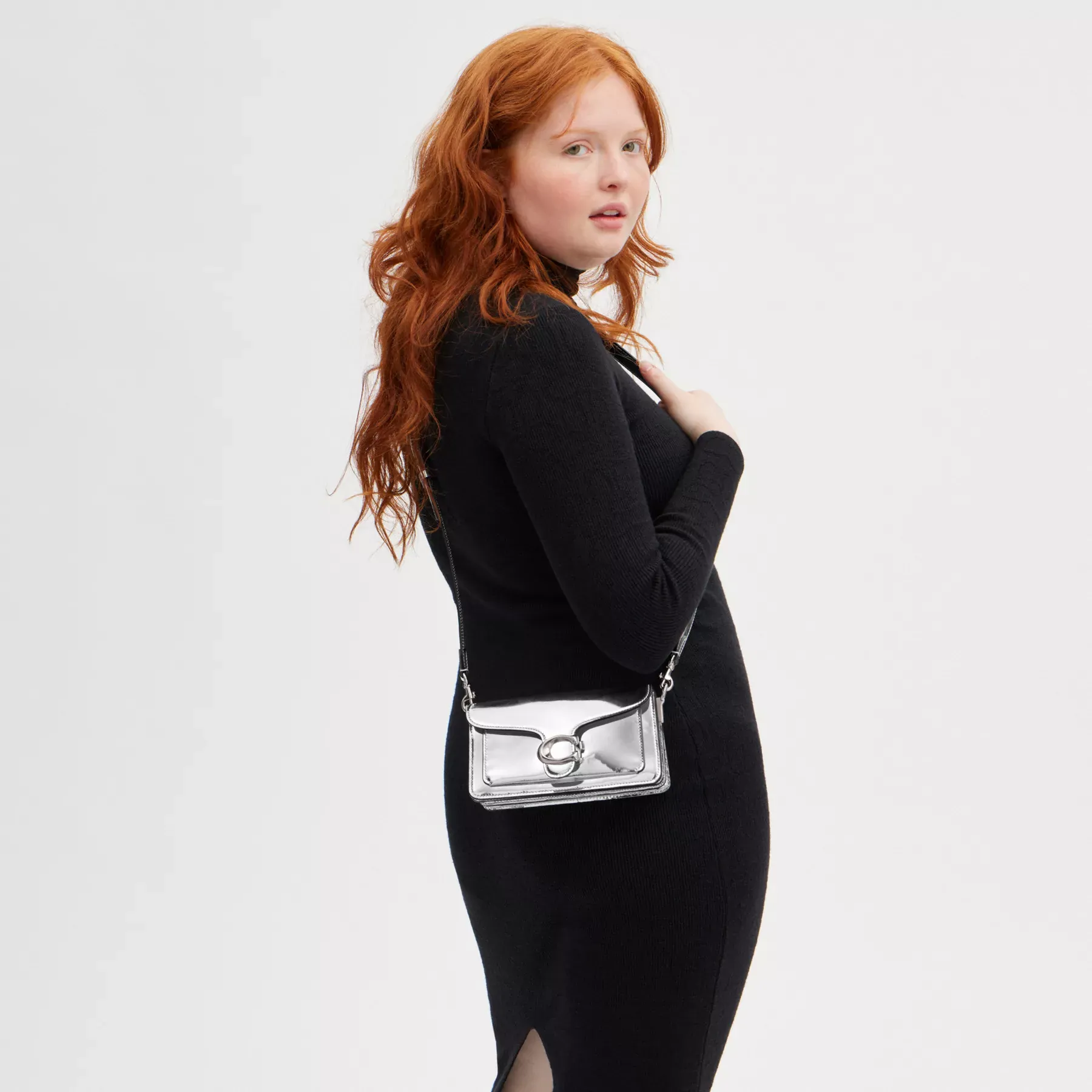 A modern take on an archival 1970s Coach design, our structured Tabby shoulder bag is crafted of lustrous mirror metallic leather. Smaller than the 26, the petite 20 features two detachable straps to carry by hand, style as a short shoulder bag or wear crossbody. It’s finished with our Signature hardware for an iconic touch.