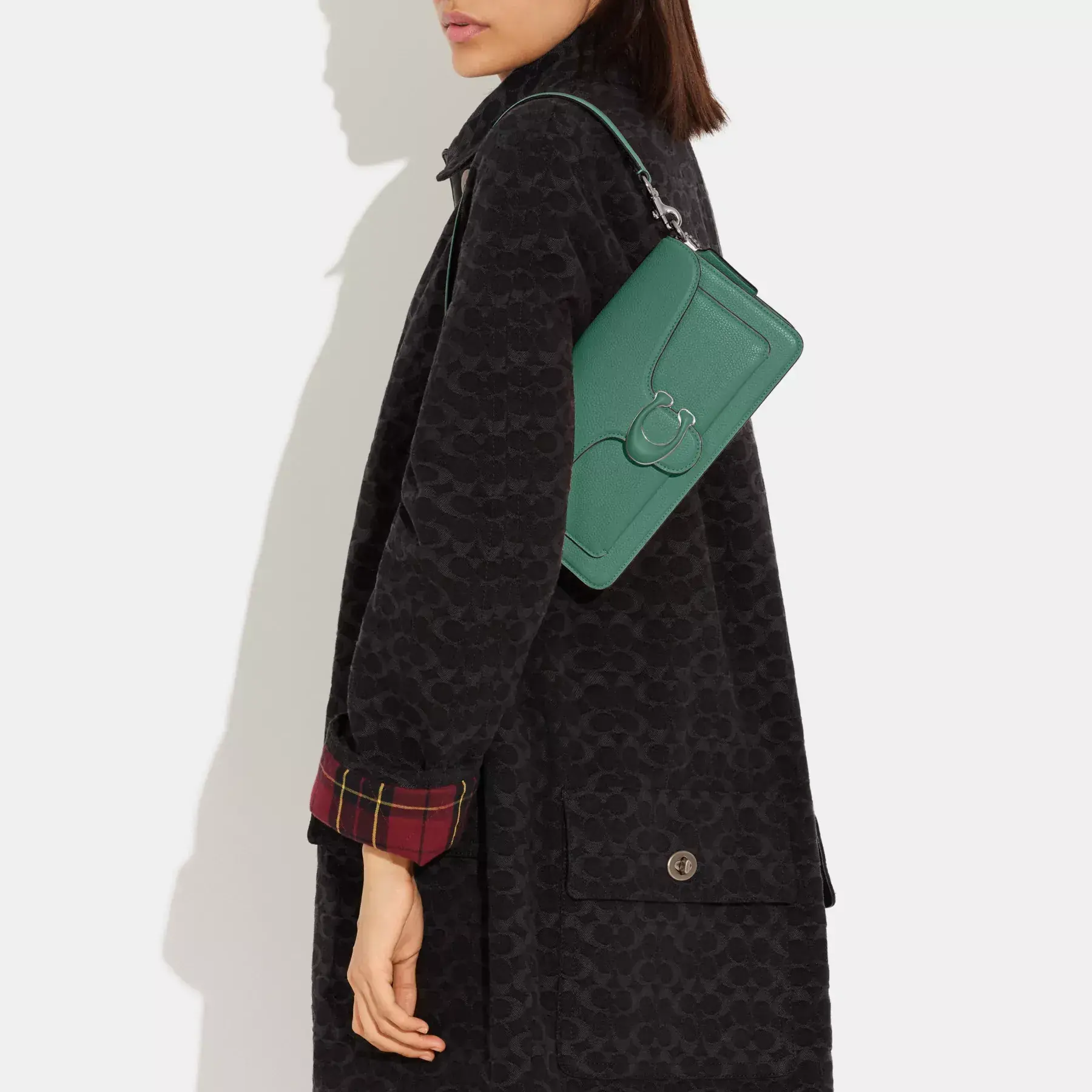 A modern take on an archival 1970s Coach design, our structured Tabby shoulder bag is crafted of polished pebble leather. Finished with our tonal leather covered Signature hardware for an iconic touch, the compact 26 features two detachable straps to carry by hand, style as a short shoulder bag or wear crossbody.