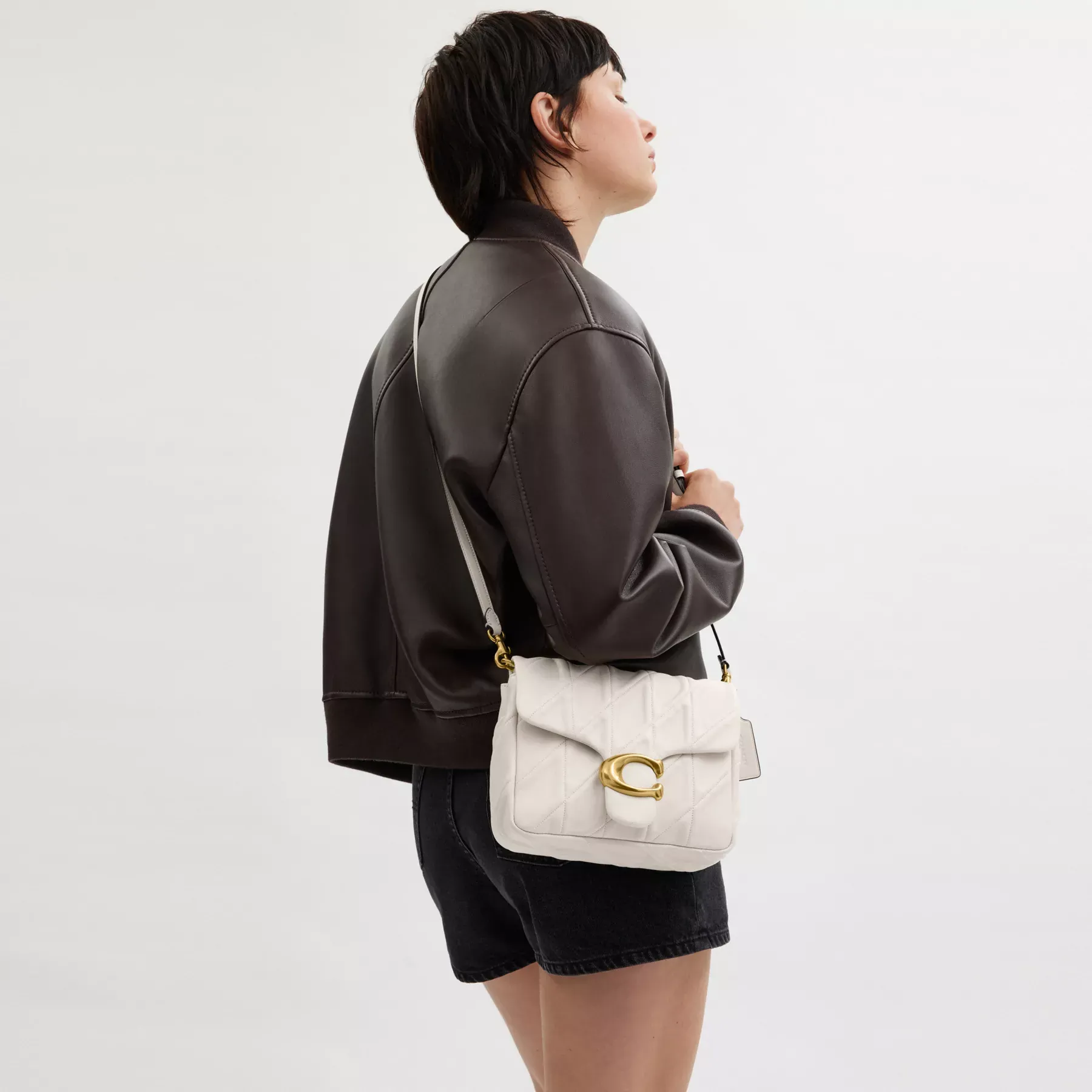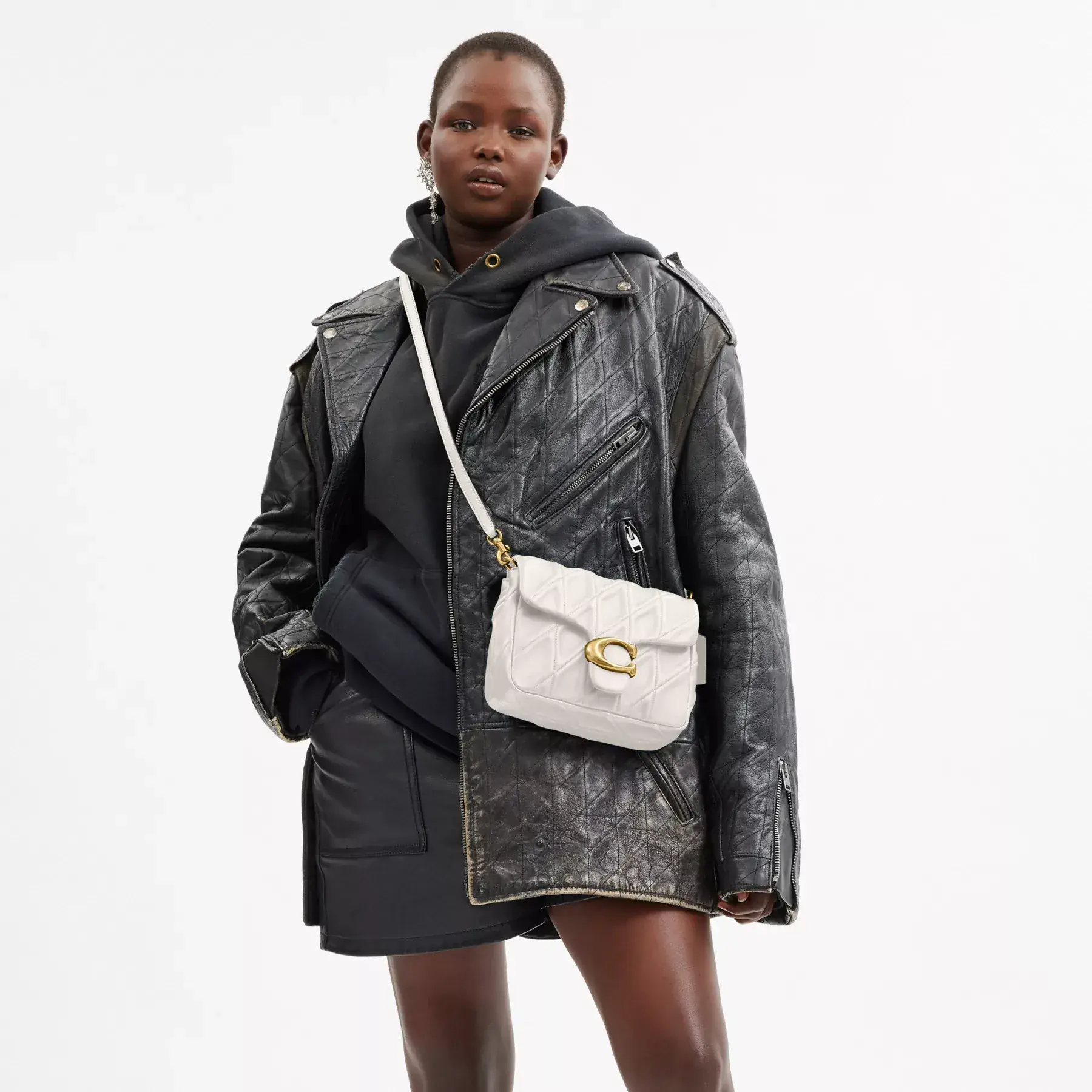 Inspired by the dynamic energy of our hometown New York City, the Times Square Tabby is a modern take on an archival 1970s Coach design. Crafted of quilted washed nappa leather and finished with our Signature hardware for an iconic touch, the structured silhouette features versatile styling options with an adjustable leather and chain strap to wear short or long on the shoulder and an adjustable leather crossbody strap.