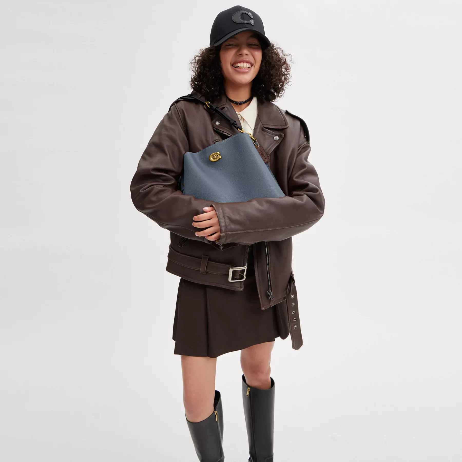 Not too big, not too small, Willow is the perfect go-anywhere shoulder bag with space for all of your day-to-day essentials. Crafted of colorblock polished pebble leather, it has an organized interior with one zip compartment, two open compartments and a snap pocket for small necessities. The roomy trapezoid shape secures with our Signature turnlock closure and can be carried by hand, on the shoulder or crossbody.