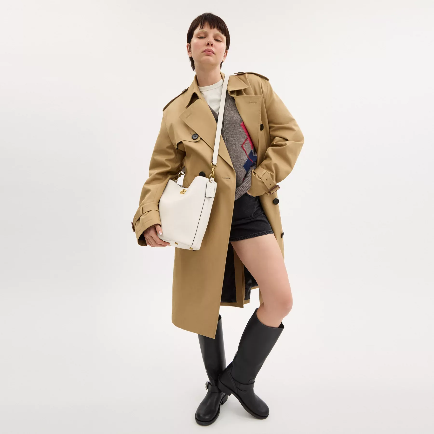 Not too big, not too small, Willow is the perfect go-anywhere shoulder bag with space for all of your day-to-day essentials. Crafted of polished pebble leather, the generously sized Soft Bucket Bag has an organized interior with one zip compartment, two open compartments and a pocket for small necessities. The streamlined bucket style secures with our Signature turnlock closure and can be carried by hand, on the shoulder or crossbody.