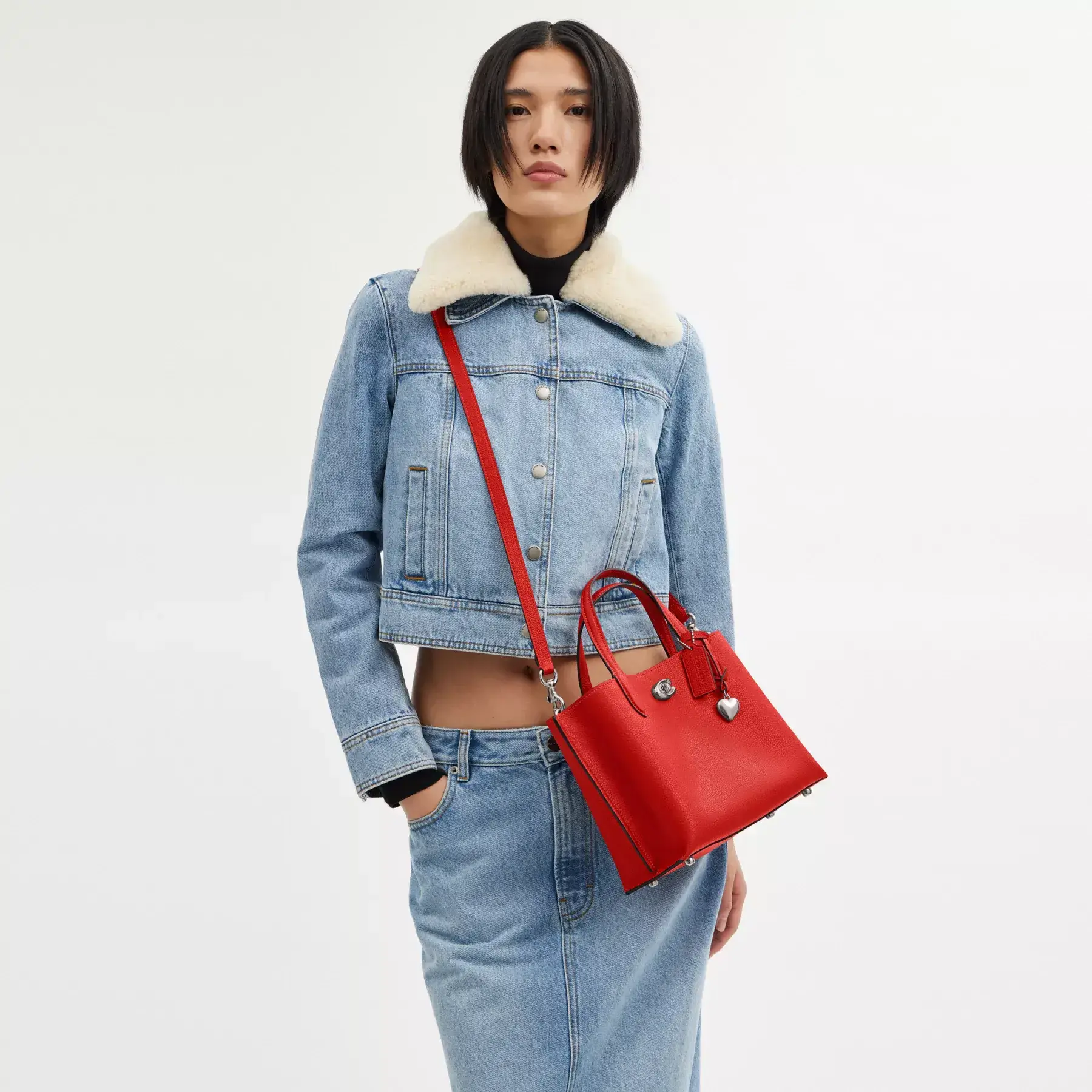 A lot to love. Not too big, not too small, Willow is the perfect carry-it-all tote with space for all of your day-to-day essentials. Crafted of polished pebble leather and detailed with a playfully romantic heart charm, the 24 features two open pockets, a secure center zip compartment and our Signature turnlock closure. Carry it by the top handles or wear on the shoulder and crossbody with the detachable strap.