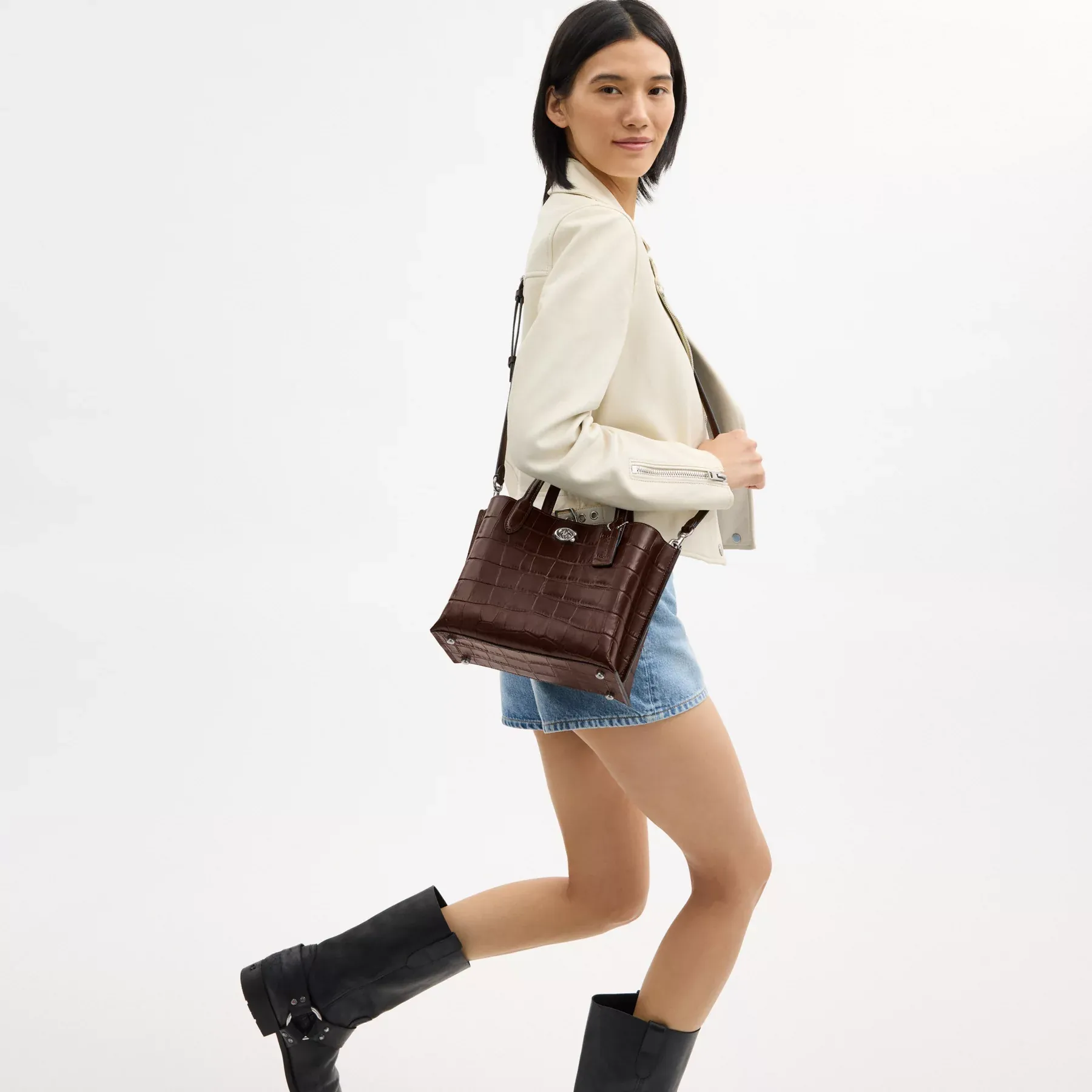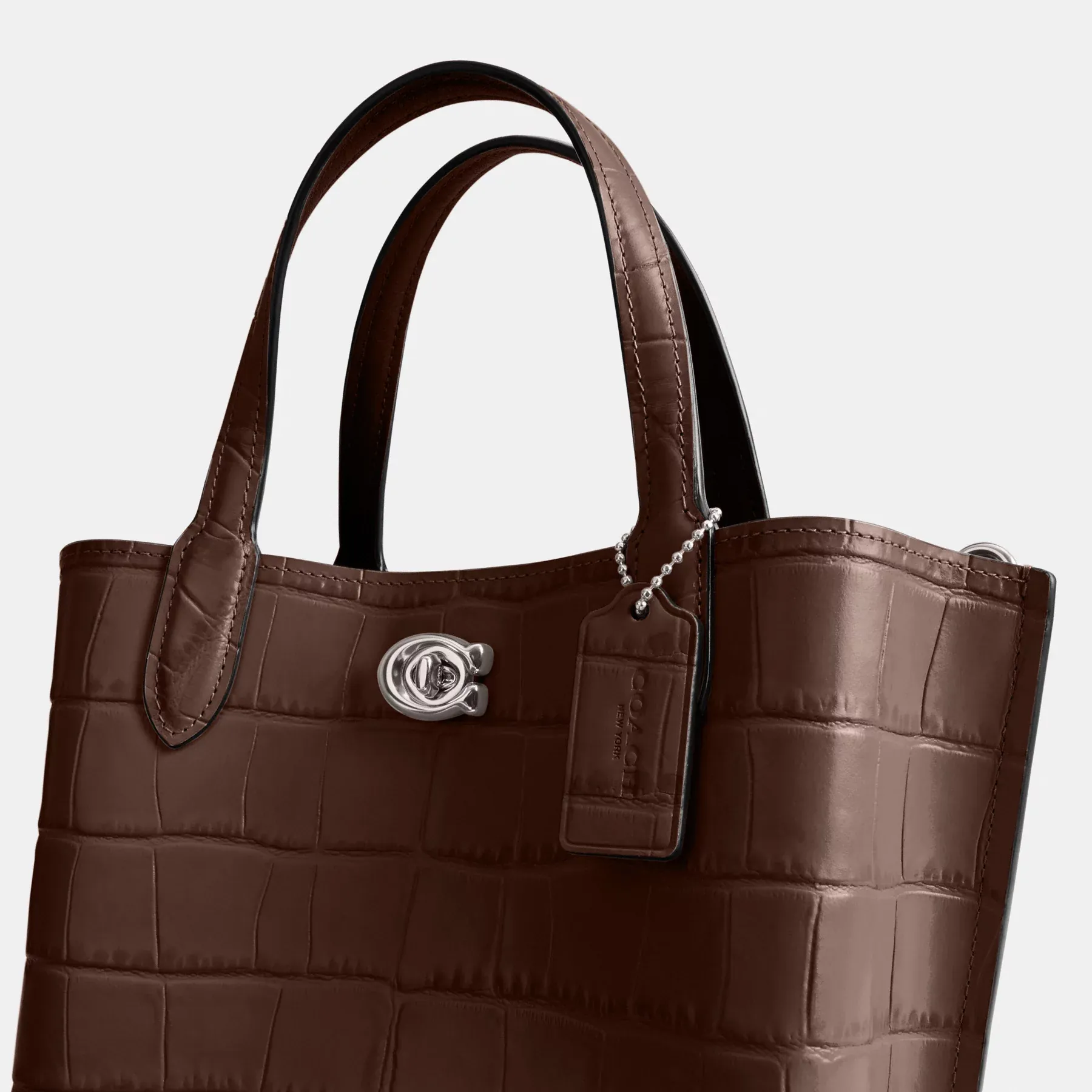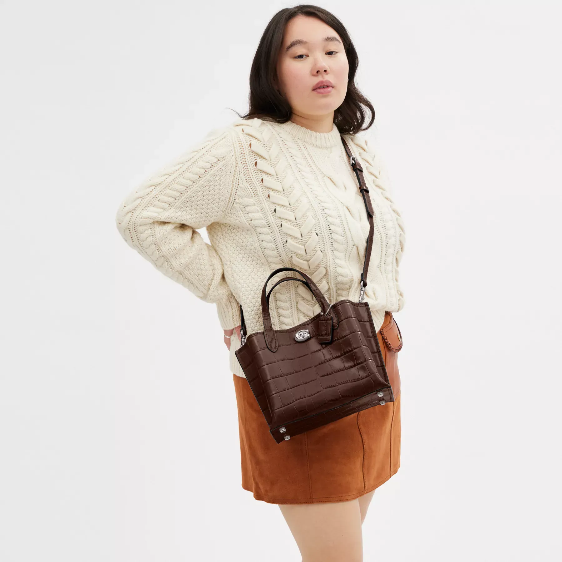 Not too big, not too small, Willow is the perfect carry-it-all tote with space for all of your day-to-day essentials. Crafted of distinctive crocodile-embossed leather and smooth leather, the 24 features two open pockets, a secure center zip compartment and our Signature turnlock closure. Carry it by the top handles or wear on the shoulder and crossbody with the detachable strap.