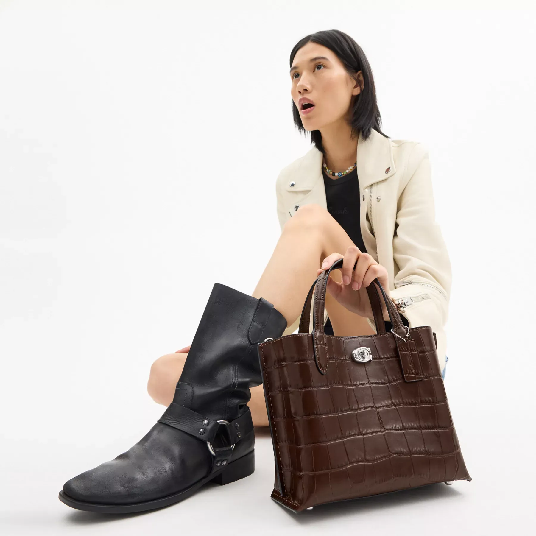• Crocodile-embossed leather and smooth leather
